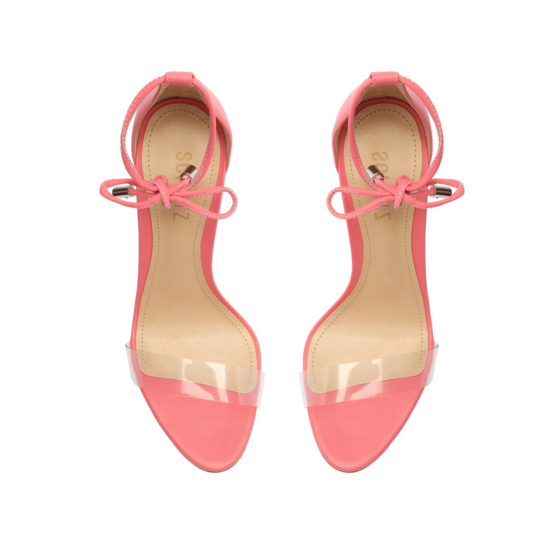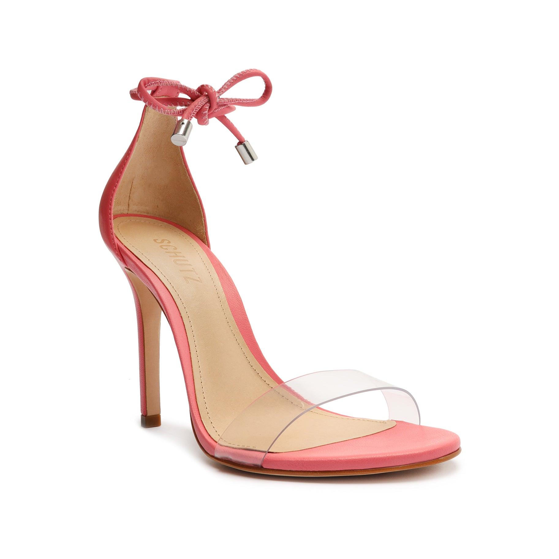 Stiletto sandal made of denim, toe band made of plastic vinyl, and features ankle ties with metal tips. Upper material: Nappa Leather & Vinyl Outsole material: cow leather Rubber patch at the heel Round open toe Stiletto high-heel Lace-up sandal Heel Height: 4.1 in | 105 mm SKU: S0138712150064 This style runs big; we suggest ordering half size down
