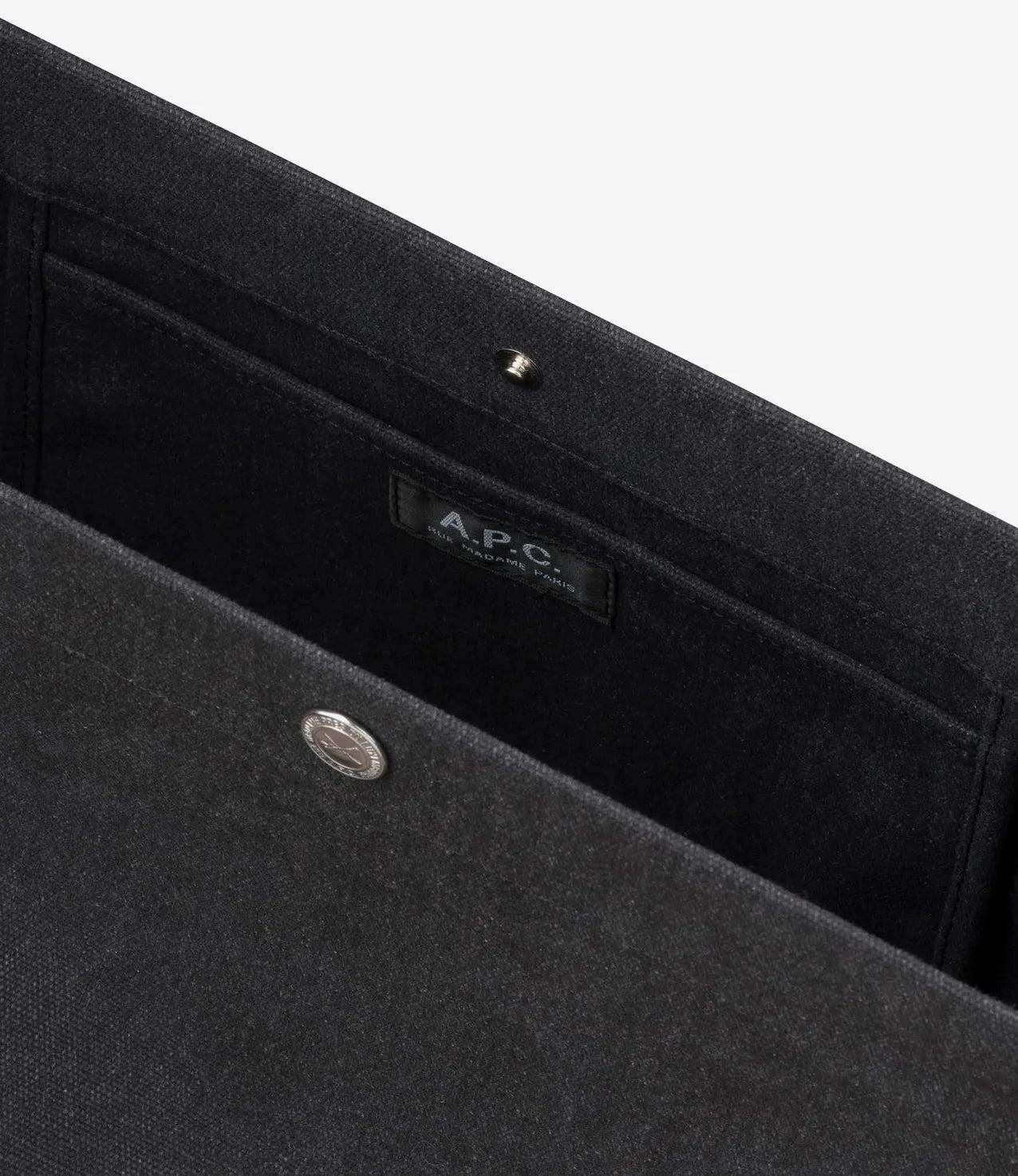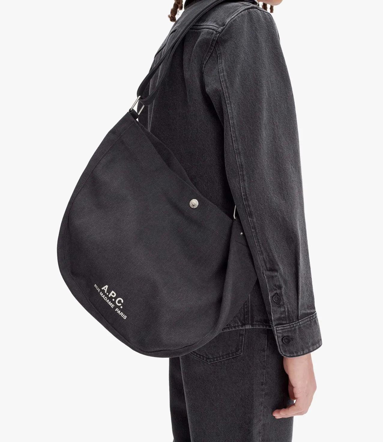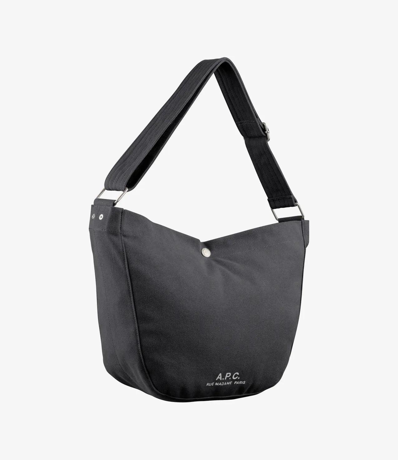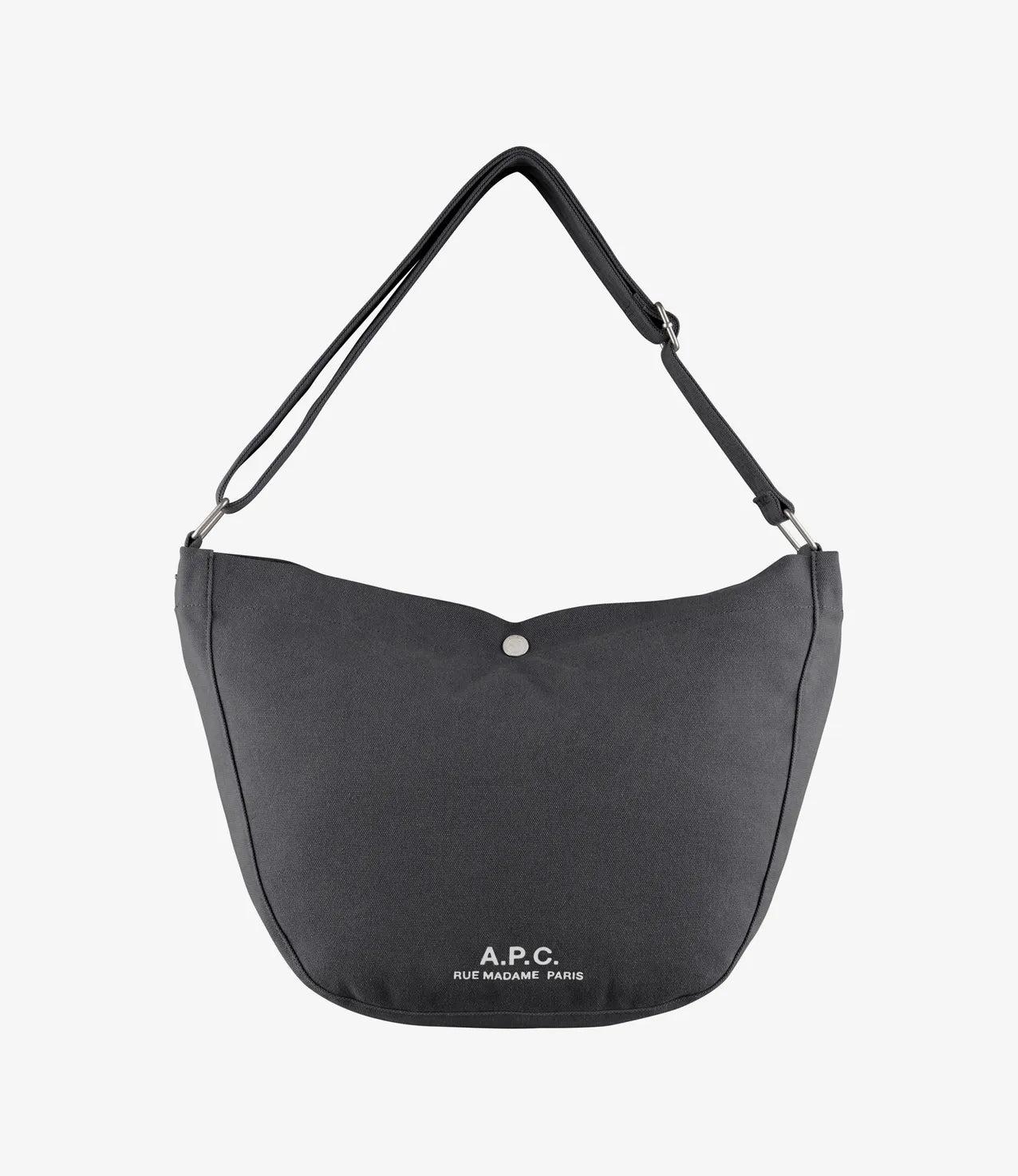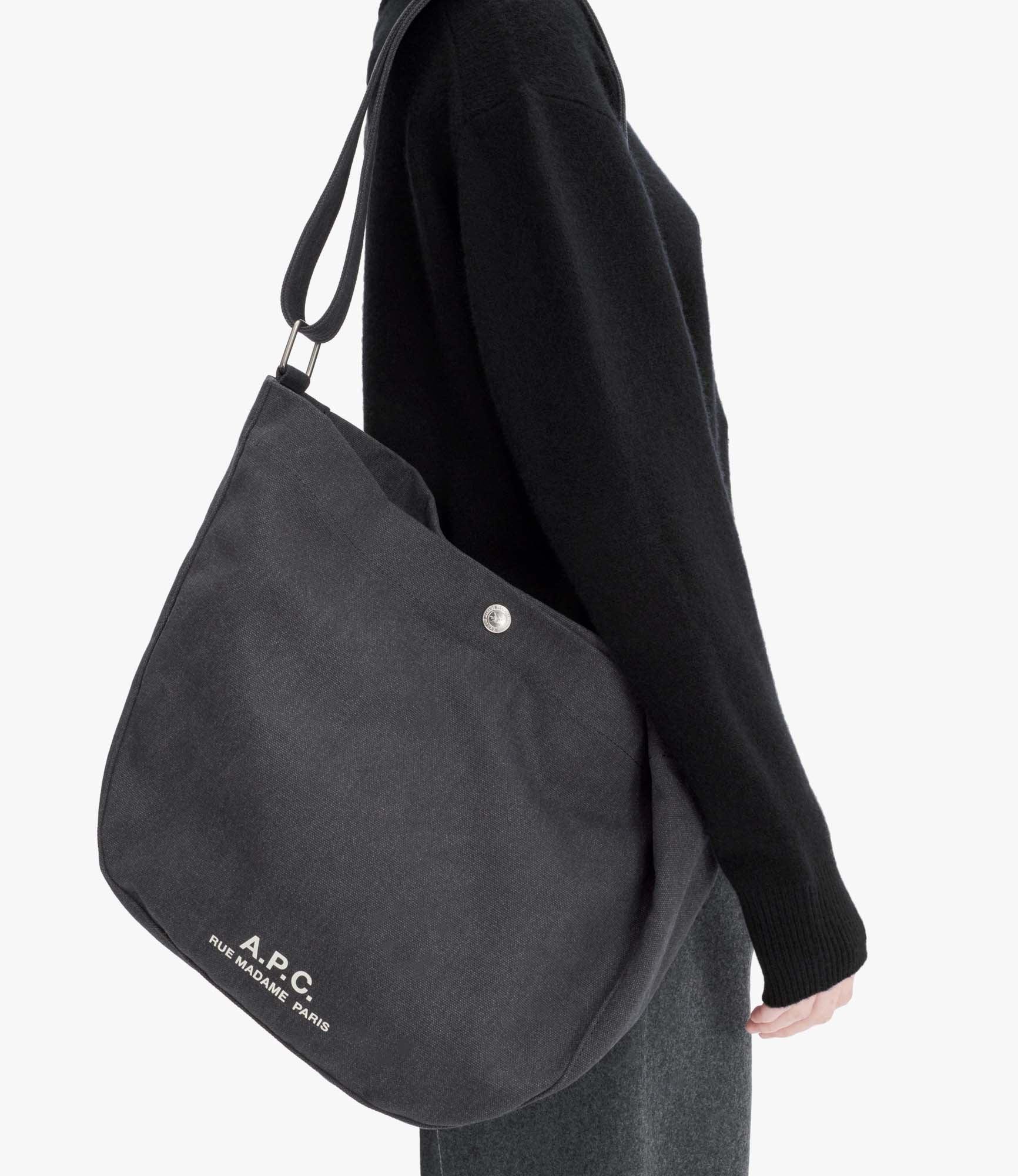 A.P.C. bag.- Unisex piece. - Durable material.- One large compartment with a snap button.- One inside pocket with the A.P.C. logo.- "A.P.C. rue Madame Paris" logo printed on the front of the bag.- Adjustable shoulder strap to wear the bag on the shoulder or across the chest.- 100% recycled material, including 60% cotton.