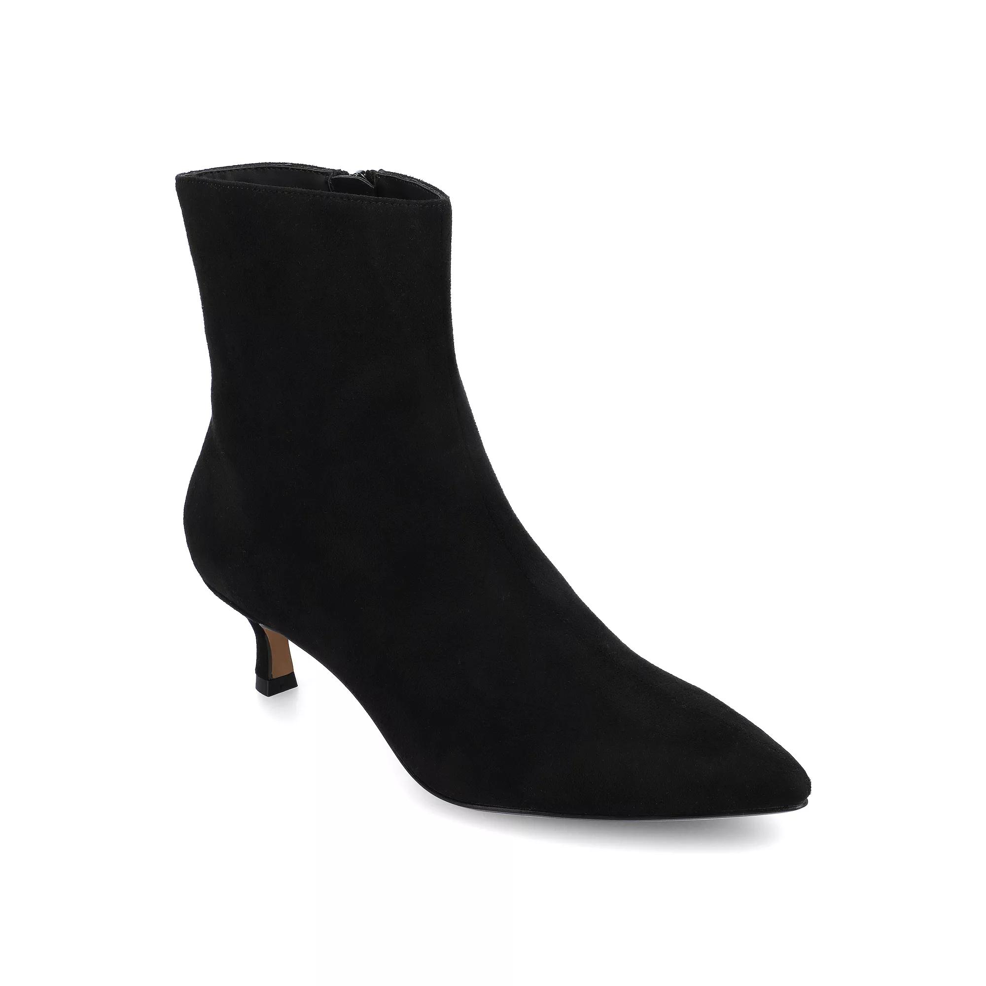 The pointed-toe bootie that gets straight to the point: you look incredible. Arely brings that sleek sophistication you've been searching for, with a kitten heel that means business and an inside zipper that's pure genius.Soft faux leather wraps around our 4mm Journee Comfort System insole because sharp style shouldn't come with sharp pain. This is comfort as your superpower — the kind that carries you from that big presentation to dinner plans without missing a beat.Whether you're commanding the conference room or catching up with your crew, Arely keeps you grounded in comfort and elevated in style. Because the best accessory? Confidence that doesn't hurt your feet. Click this FOOTWEAR GUIDE to find the perfect fit and more! - https://www.kohls.com/feature/shoesizeguide.jsp. SHOE FEATURES: footbed, Side zipper for easy on and off, Kitten heel. SHOE CONSTRUCTION: Faux-leather upper, Fabric lining, Polyurethane outsole. SHOE DETAILS: Pointed toe, Zipper closure, 2-in. heel, 6-in. shaft height, 11-in. circumference, footbed, Spot clean, Imported. Size: 7.5. Color: Black Suede. Gender: female. Age Group: adult.