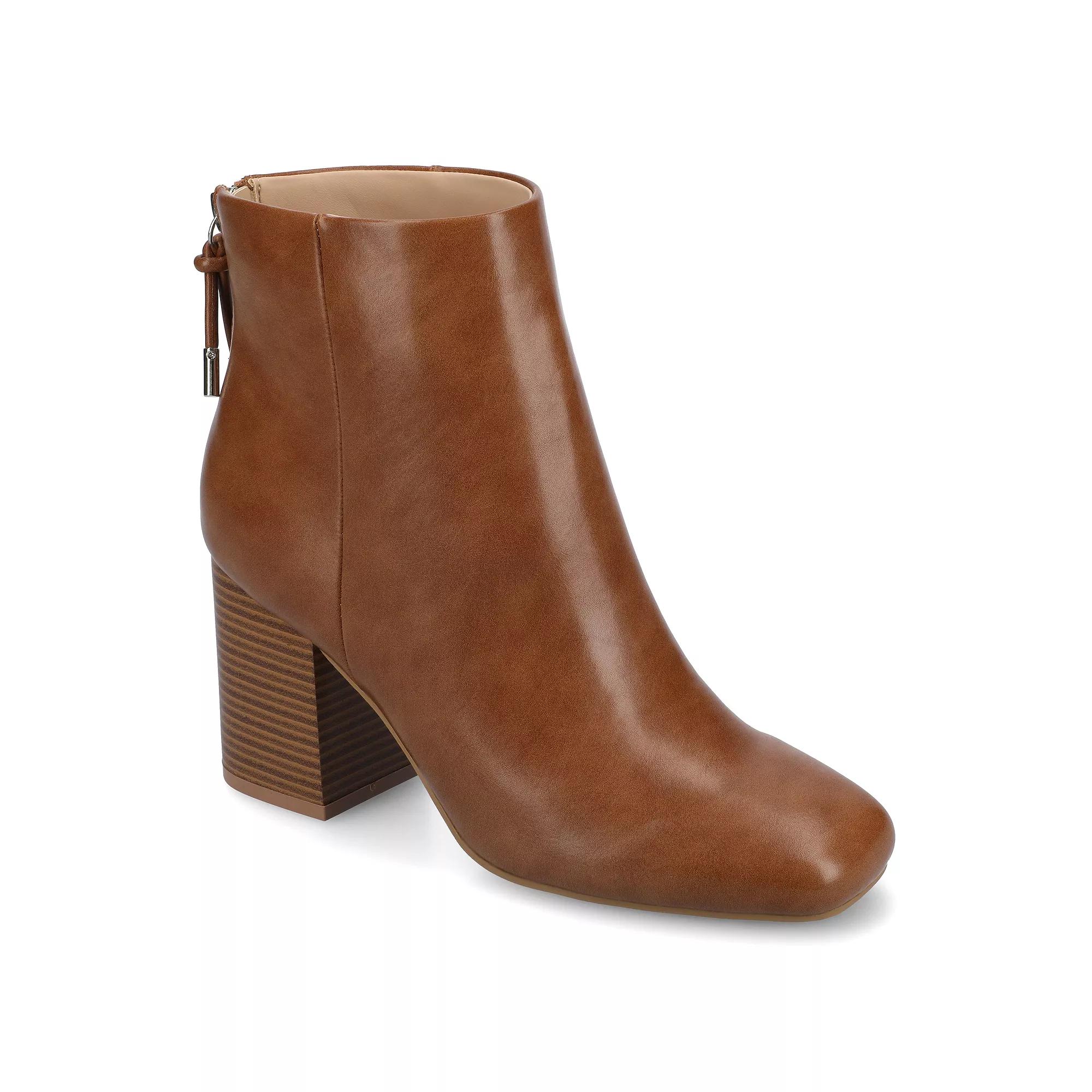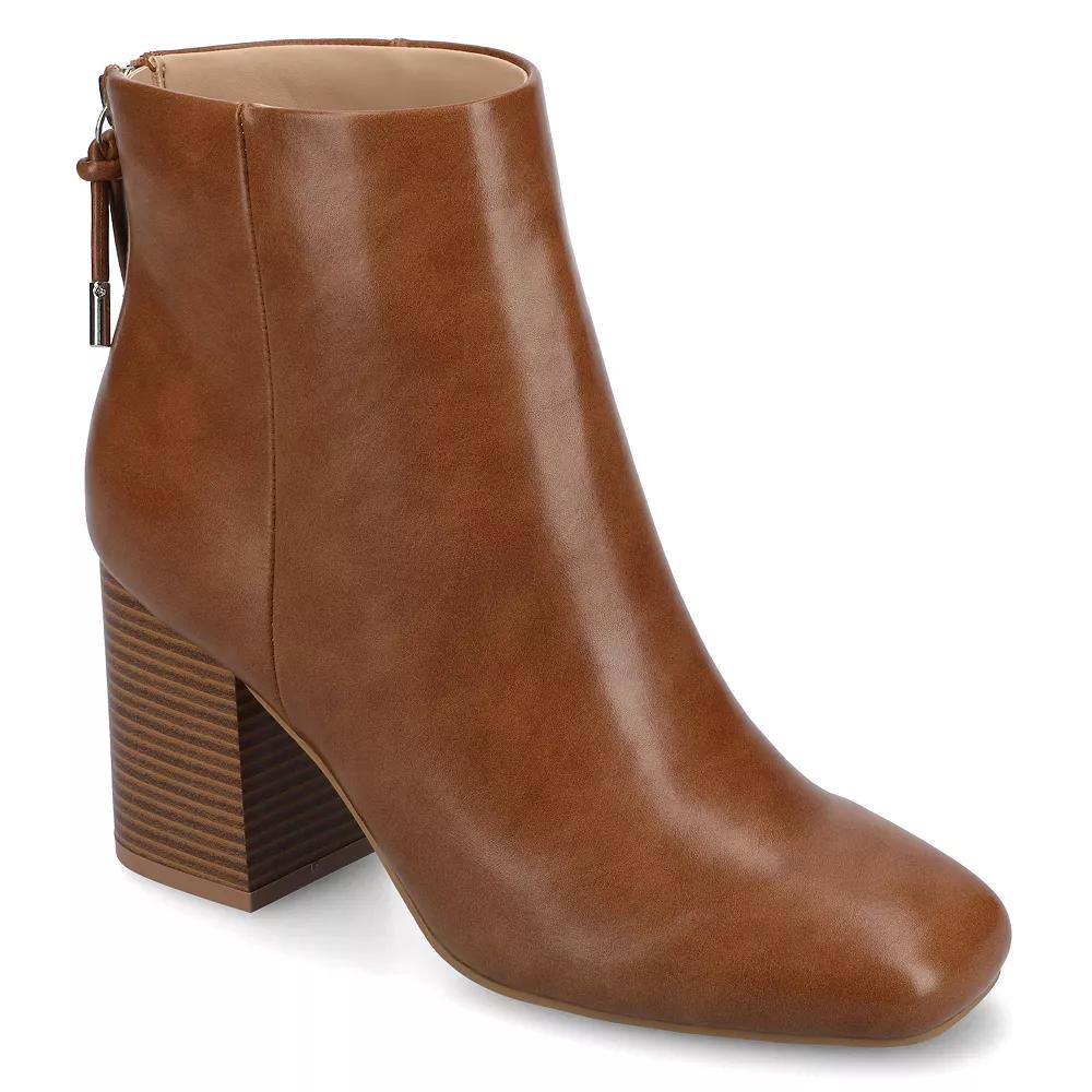 These Audrina ankle boots from Journee were made for walking. Click this FOOTWEAR GUIDE to find the perfect fit and more! - https://www.kohls.com/feature/shoesizeguide.jsp. BOOT FEATURES: footbed, Tassel detail on zipper, Stacked block heel. BOOT CONSTRUCTION: Faux suede upper, Fabric lining, Manmade outsole. BOOT DETAILS: Square toe, Zipper closure, footbed, 3-in. heel, 4.5-in. shaft, 10.5-in. circumference. Size: 8. Color: Cognac Pu. Gender: female. Age Group: adult. Material: FAUX LEATHER.