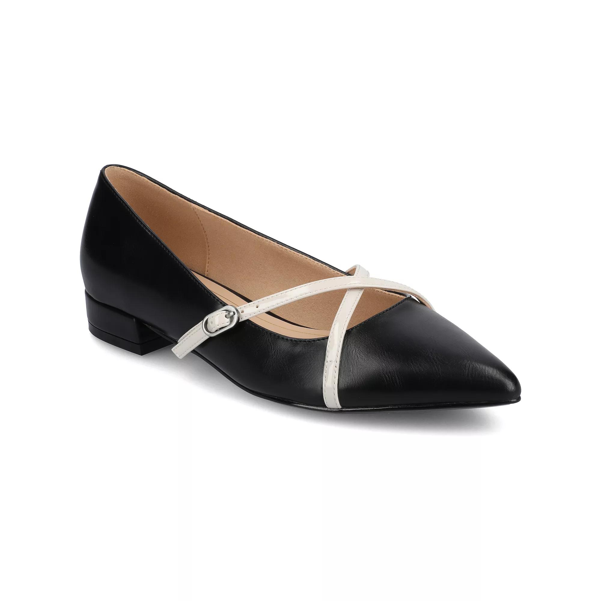 These adorable Camby crisscross strap pointed toe covered block heel dress flats from Journee are sure to be the new go-to pair in your footwear collection. Click this FOOTWEAR GUIDE to find the perfect fit and more! - https://www.kohls.com/feature/shoesizeguide.jsp. FEATURES: Luxe synthetic material, Convenient slip-on design, Crisscross strap detail with adjustable buckle for a customizable fit, Covered block heel. DETAILS: Synthetic upper, Synthetic lining, Synthetic midsole, Synthetic outsole, Pointed toe, Slip-on, Polyurethane footbed, 1-in. heel height, Spot clean, Imported. Size: 6 Wide. Color: Black. Gender: female. Age Group: adult.