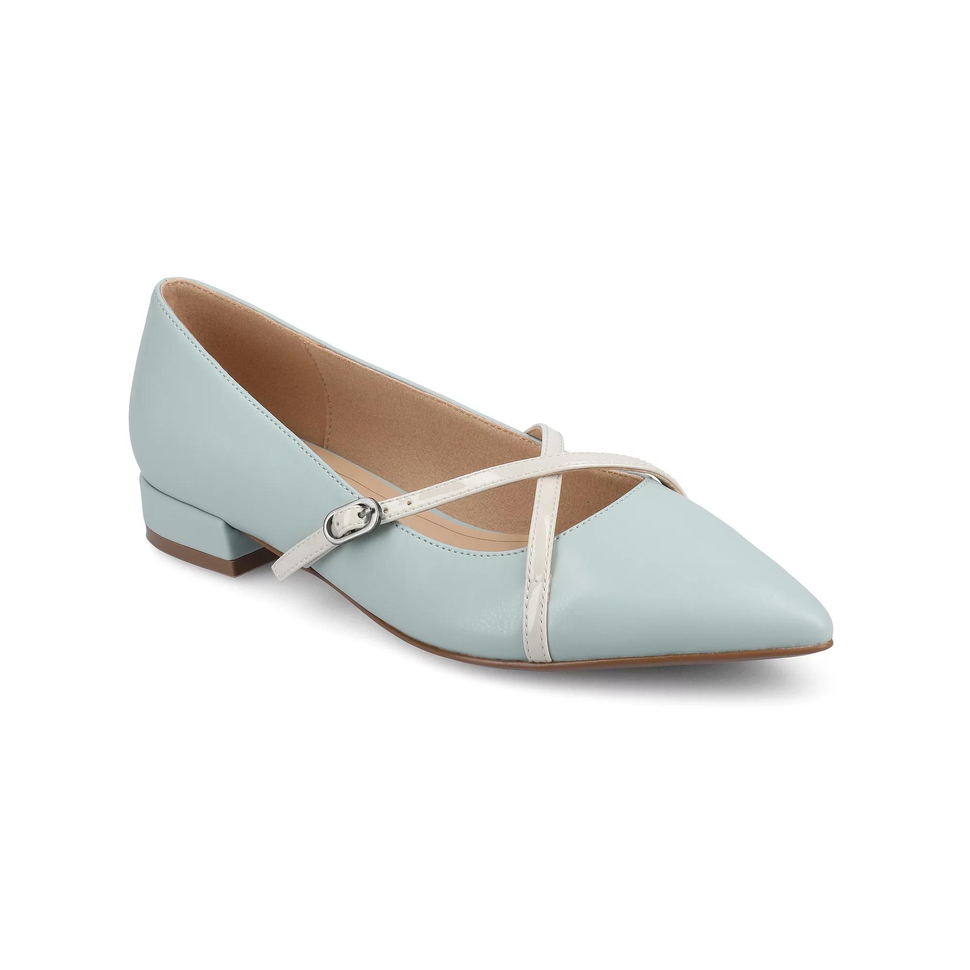 These adorable Camby crisscross strap pointed toe covered block heel dress flats from Journee are sure to be the new go-to pair in your footwear collection. Click this FOOTWEAR GUIDE to find the perfect fit and more! - https://www.kohls.com/feature/shoesizeguide.jsp. FEATURES: Luxe synthetic material, Convenient slip-on design, Crisscross strap detail with adjustable buckle for a customizable fit, Covered block heel. DETAILS: Synthetic upper, Synthetic lining, Synthetic midsole, Synthetic outsole, Pointed toe, Slip-on, Polyurethane footbed, 1-in. heel height, Spot clean, Imported. Size: 7.5. Color: Blue. Gender: female. Age Group: adult.