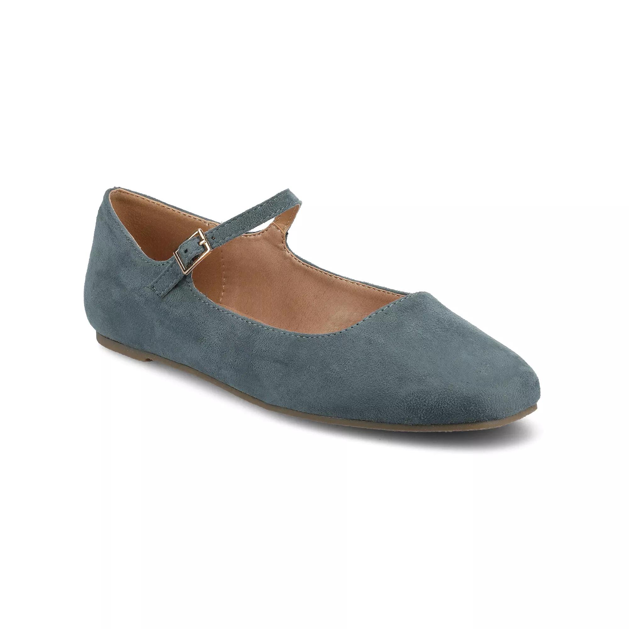 These Journee Carrie flats will go with any outfit! Click this FOOTWEAR GUIDE to find the perfect fit and more! - https://www.kohls.com/feature/shoesizeguide.jsp. SHOE FEATURES: Mary jane style, Small buckle detail. SHOE CONSTRUCTION: Faux leather upper, Polyurethane lining, Manmade outsole. SHOE DETAILS: Square toe, Buckle closure, Padded footbed. Size: 9.5 Wide. Color: Blue. Gender: female. Age Group: adult.