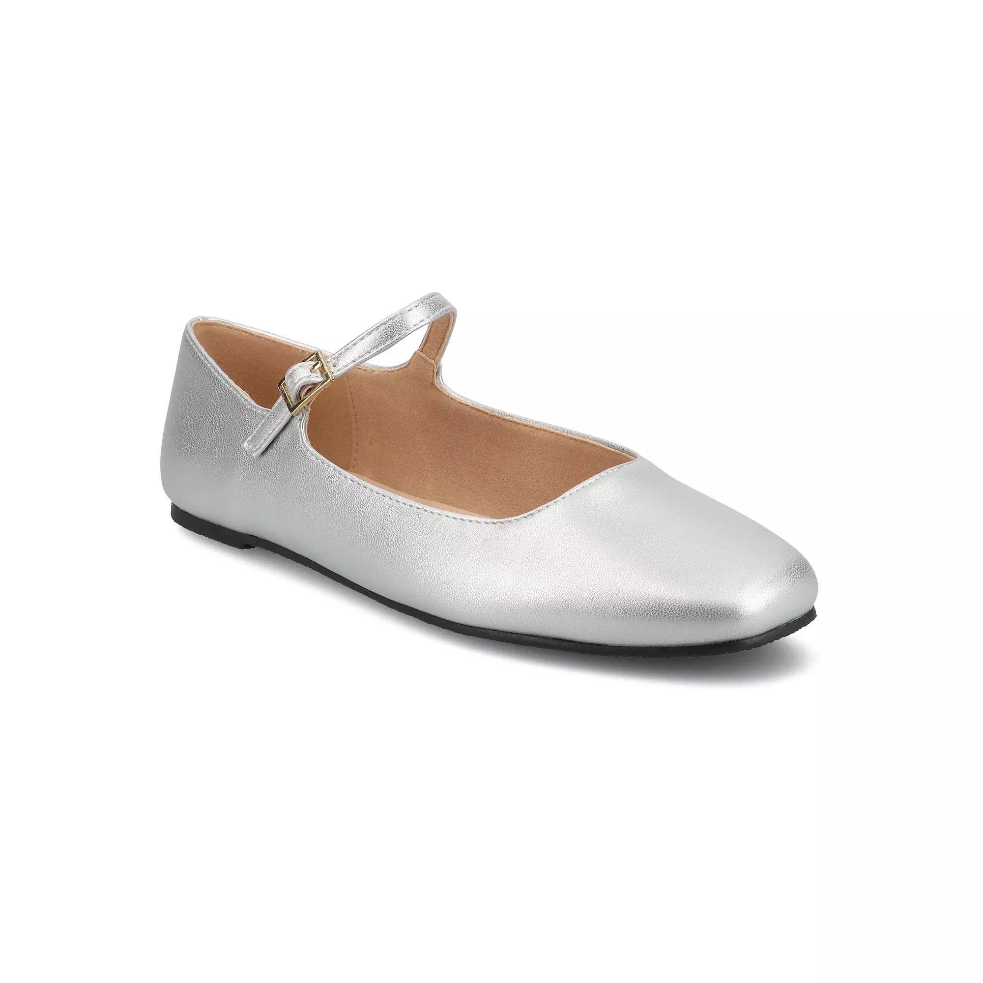 These Journee Carrie flats will go with any outfit! Click this FOOTWEAR GUIDE to find the perfect fit and more! - https://www.kohls.com/feature/shoesizeguide.jsp. SHOE FEATURES: Mary jane style, Small buckle detail. SHOE CONSTRUCTION: Faux leather upper, Polyurethane lining, Manmade outsole. SHOE DETAILS: Square toe, Buckle closure, Padded footbed. Size: 11. Color: Silver. Gender: female. Age Group: adult.