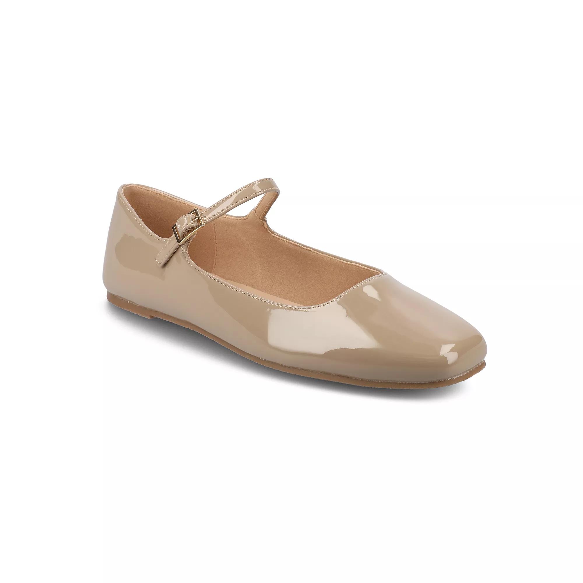 These Journee Collection Carrie flats will go with any outfit!Click this FOOTWEAR GUIDE to find the perfect fit and more! SHOE FEATURES Mary jane style Small buckle detailSHOE CONSTRUCTION Faux leather upper Polyurethane lining Manmade outsoleSHOE DETAILS Square toe Buckle closure Padded footbed Size: 12. Color: Taupe Patent. Gender: female. Age Group: adult.