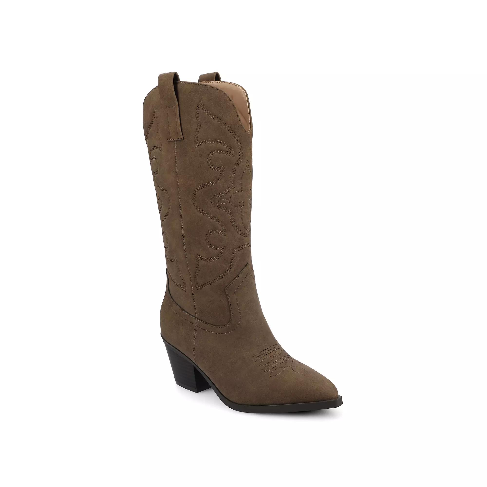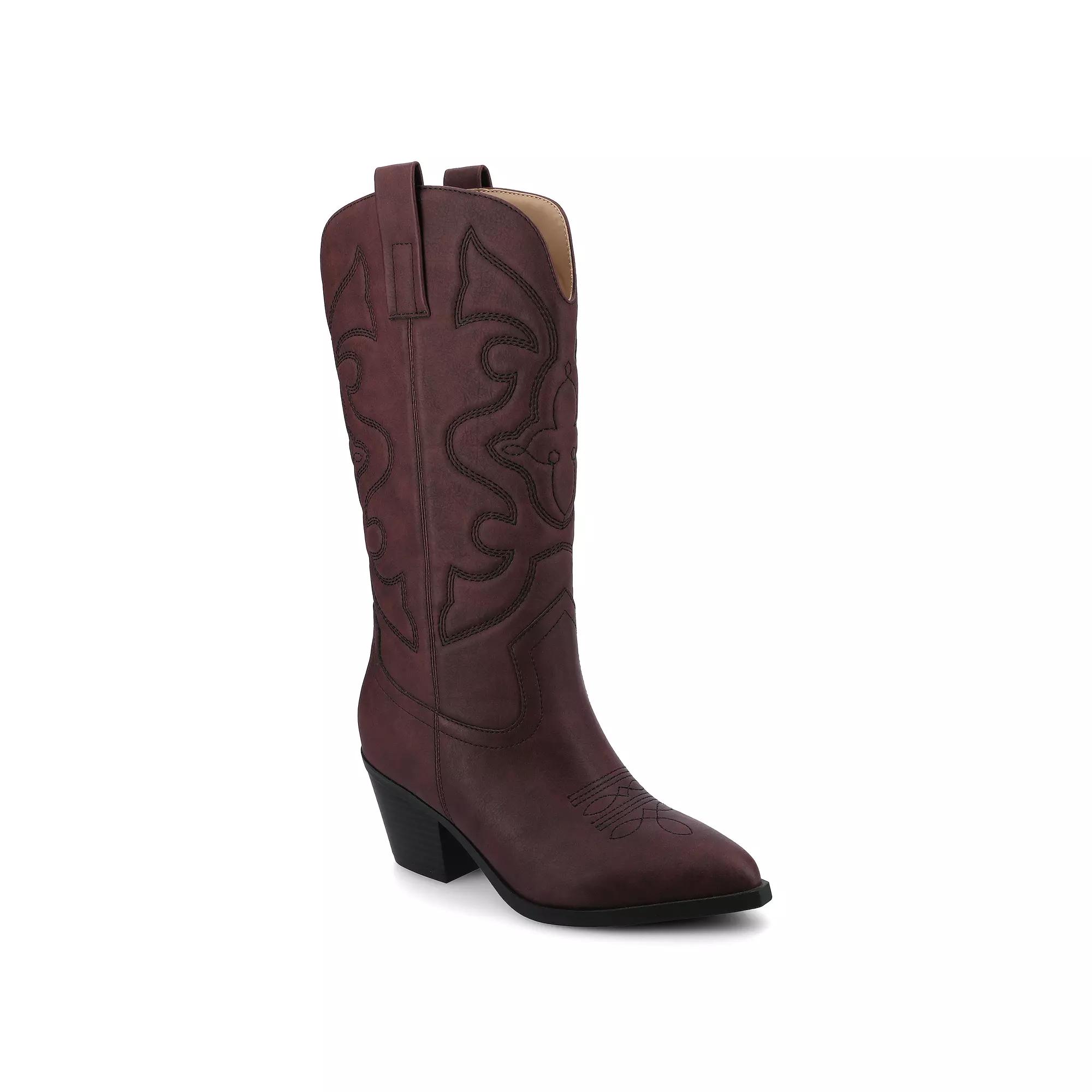 Meet the Chantry — your country roots just got a major glow-up. This pointed-toe bootie serves western stitch details and buttery soft faux leather that says "ranch chic" without the actual ranch work. Think Sunday brunch energy with Tuesday confidence.The block heel gives you that perfect lift while the 4mm Journee Comfort System Insole works behind the scenes, turning all-day wear into your secret advantage. Because when comfort becomes your superpower, you stop thinking about your feet and start thinking about everything else — like how good you look walking into that room.Mid-calf height meets modern style in a boot that doesn't just complete your outfit, it elevates your entire vibe. From coffee runs that turn into impromptu shopping trips to dinner dates where you want to look effortless but intentional, the Chantry adapts to your life, not the other way around.This is the boot that transforms "nice outfit" into "where did you get those?" — the kind of finishing touch that makes people assume you have your whole life together, even if you're just really good at picking shoes. Click this FOOTWEAR GUIDE to find the perfect fit and more! - https://www.kohls.com/feature/shoesizeguide.jsp. SHOE FEATURES: Western-style design, Embroidery detail, footbed. SHOE CONSTRUCTION: Faux leather upper, Fabric lining, Manmade outsole. SHOE DETAILS: Pointed toe, Pull-on, footbed, 2.75-in. heel, 12-in. shaft, 14.5-in. circumference. Size: 9.5. Color: Oxblood. Gender: female. Age Group: adult. Material: SYNTHETIC.