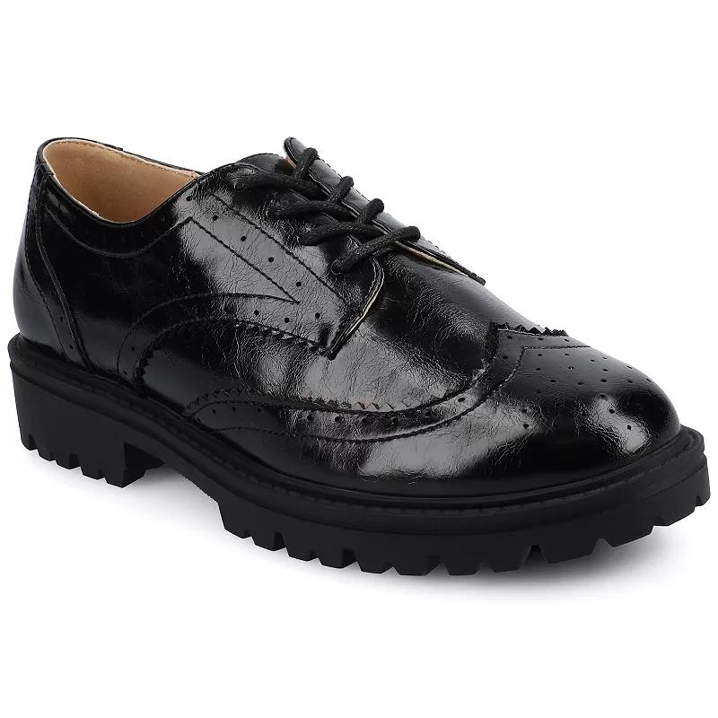 Meet Claudiya — the wingtip oxford that proves preppy can be powerful. Classic charm meets chunky lug sole energy, because who says you can't be scholarly and statement-making?Crafted in soft vegan leather with that perfect almond toe, she's giving Ivy League but make it now. The lace-up design keeps things timeless while that unexpected sole says you're here to shake things up — and with 4mm of Tru Comfort Foam™, you'll do it all day without missing a beat.This is where boardroom confidence meets weekend adventure. Claudiya doesn't just complement your power blazer — she makes your favorite jeans feel like they belong in first class. She's the shoe that has people asking "where did you get those?" while you're busy getting things done.From morning meetings that matter to evening plans that spark joy, Claudiya transforms every step into your most confident stride yet. She's not just completing your shoe collection — she's the plot twist your style story needed. Click this FOOTWEAR GUIDE to find the perfect fit and more! - https://www.kohls.com/feature/shoesizeguide.jsp. FEATURES: Block Heel. Lug Outsole. Oxford Style. DETAILS: Faux Leather upper, Fabric lining, Faux Leather midsole, Man-made outsole, Almond toe, Lace-up Closure, footbed, 1.5-in. heel height, Platform height: 1 in., Spot clean, Imported. Size: 10 Wide. Color: Patent Black. Gender: female. Age Group: adult. Material: SYNTHETIC.