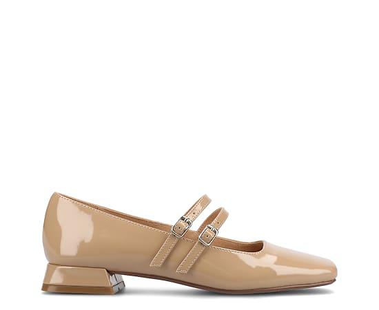 Journee Collection Gredah Womens Flat Nude Classic can be a trend in the Gredah Flat from Journee Collection. Featuring a glossy patent leather upper with adjustable buckle straps, this Mary Jane Flat has a chic retro feel. The insole soothes your foot, while the low heel adds a subtle lift. Synthetic upper Dual buckle closures Square toe Cushioned insole 1 block heel