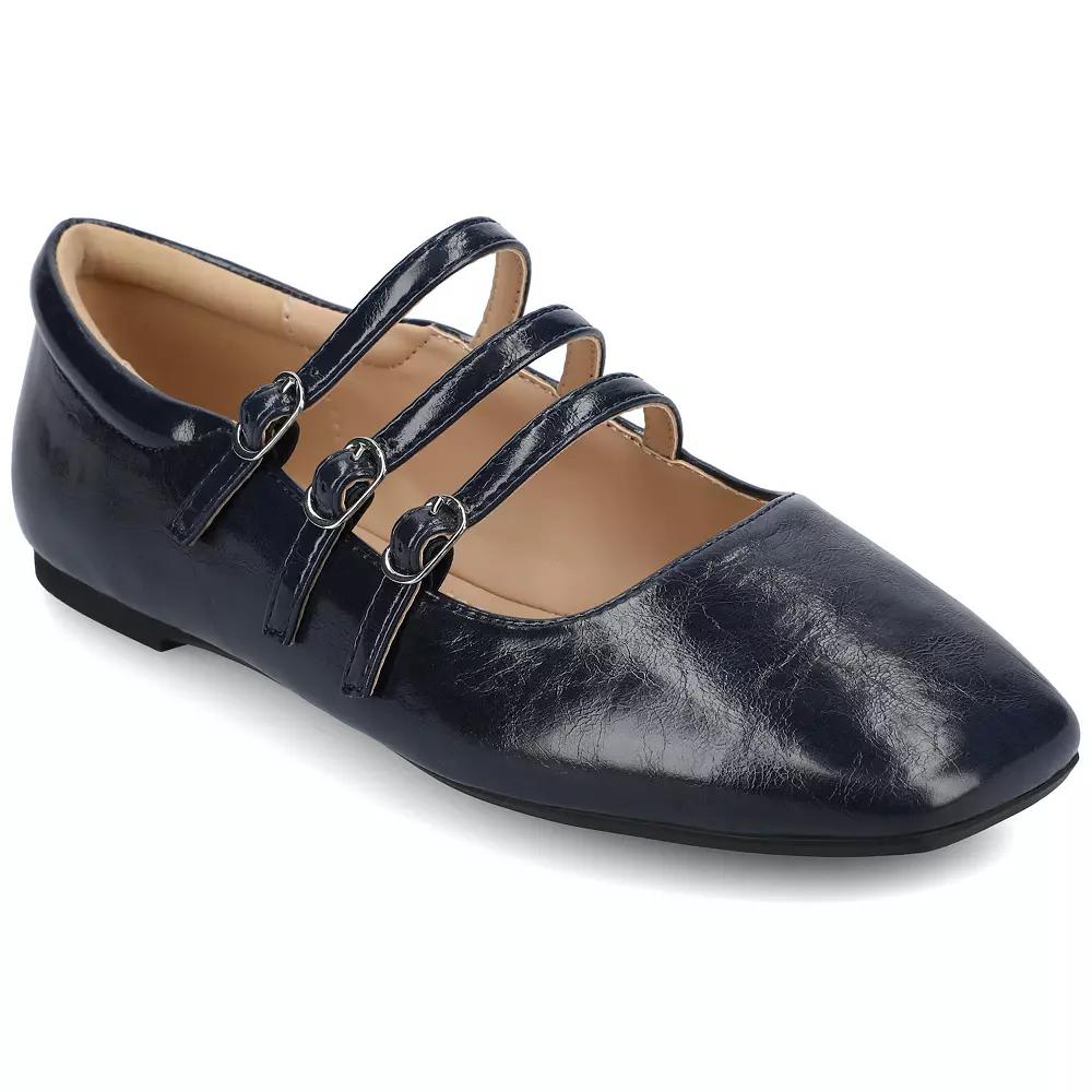 Fashion, comfort and style combine on these Journee Darlin Women's Multi Strap Square Toe Flats. Click this FOOTWEAR GUIDE to find the perfect fit and more! - https://www.kohls.com/feature/shoesizeguide.jsp. FEATURES: Luxe Faux Leather, Mary Jane Style, Triple Strap and Buckle. DETAILS: Faux-leather upper, Faux-leather lining, Faux-leather midsole, Manmade outsole, Square toe, Buckle closure, footbed, Spot clean, Imported. Size: 11 Wide. Color: Crinkle Navy. Gender: female. Age Group: adult.
