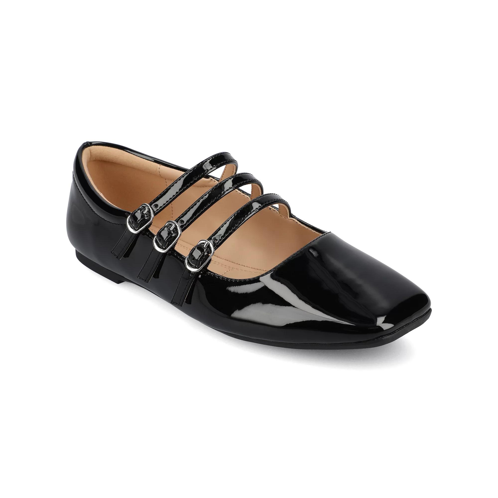 Fashion, comfort and style combine on these Journee Darlin Women's Multi Strap Square Toe Flats. Click this FOOTWEAR GUIDE to find the perfect fit and more! - https://www.kohls.com/feature/shoesizeguide.jsp. FEATURES: Luxe Faux Leather, Mary Jane Style, Triple Strap and Buckle. DETAILS: Faux-leather upper, Faux-leather lining, Faux-leather midsole, Manmade outsole, Square toe, Buckle closure, footbed, Spot clean, Imported. Size: 9. Color: Patent Black. Gender: female. Age Group: adult.