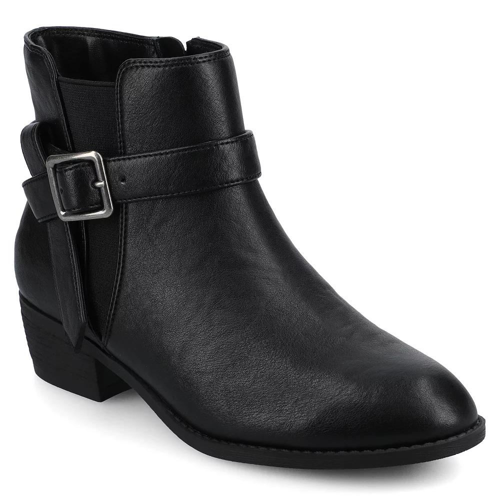 Unleash effortless style with Journee's chic ankle boots, featuring a sleek almond toe design that complements any outfit, from casual days to stylish evenings. The easy pull-on design and luxurious comfort insole ensure that you can dance through your day with confidence and ease. WC = Medium Width, Wide Calf. M XWC = Medium Width, Extra Wide Calf. W = Wide Width, Regular Calf. W WC = Wide Width, Wide Calf. W XWC = Wide Width, Extra Wide Calf. Click this FOOTWEAR GUIDE to find the perfect fit and more! - https://www.kohls.com/feature/shoesizeguide.jsp. FEATURES: Comfortable insole. DETAILS: Manmade lining, outsole, upper, & midsole, Almond toe, Pull-on, Foam footbed, 1.5-in. heel height, 4.5-in. shaft height, 10-in. shaft circumference, Spot clean, Imported. Size: 11. Color: Black. Gender: female. Age Group: adult. Material: SYNTHETIC.