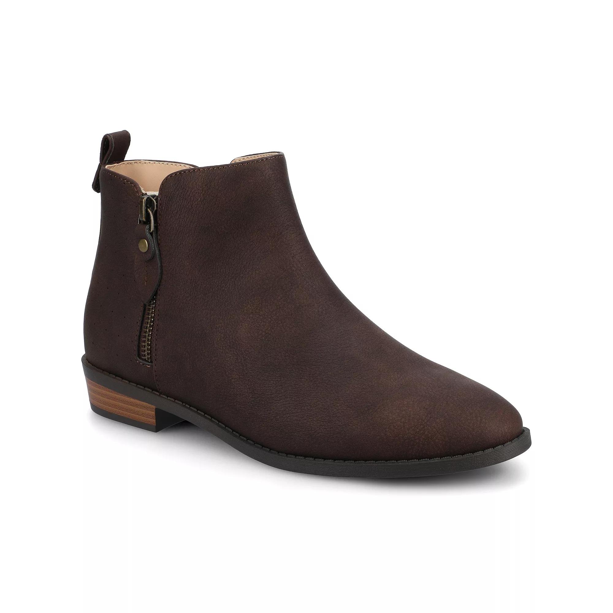 Complement your kiddo's formal outfit perfectly with these Madden Rhinestone Boys Dress Shoes. Click this FOOTWEAR GUIDE to find the perfect fit and more! - https://www.kohls.com/feature/shoesizeguide.jsp. SHOE FEATURES: Perforated design, dual zipper detail, Durable traction sole and block heel. SHOE CONSTRUCTION: Faux leather upper, Fabric lining, Manmade, rubber outsole. SHOE DETAILS: Almond toe, Zipper closure, Padded footbed, 1-in. heel, 10-in. shaft circumference, 3.5-in. shaft height. Size: 7 Wide. Color: Vintage Chocoalte. Gender: female. Age Group: adult. Material: SYNTHETIC.