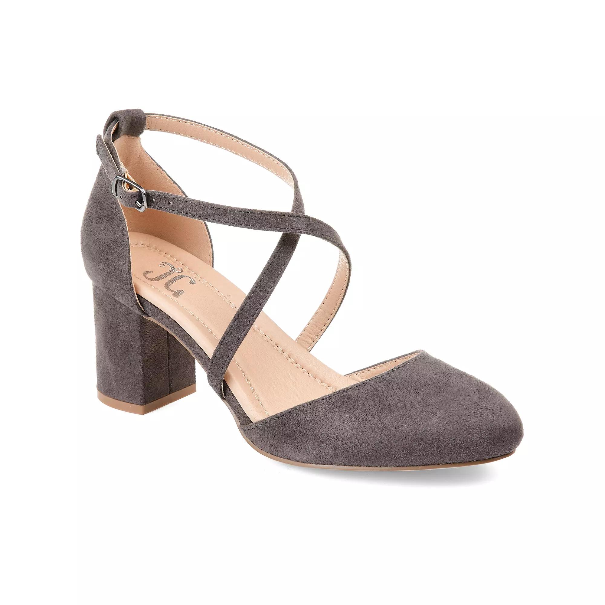 Step into a classic style with this comfort sole design by Journee Collection. This pump features micro suede material, crisscross buckle strap, an almond toe, and a heel height that will fit you perfectly.Features: Lightweight, ComfortShoe Heel Height: 2 1/2 InchesUpper/Outer Base Material: 100% SyntheticShoe Lining Material: SyntheticSole Material Content: 100% RubberToe Type: Pointed Toe, Closed ToeShoe Strap Type: Ankle StrapCare: Spot CleanHeel Style: Block HeelCountry of Origin: Imported