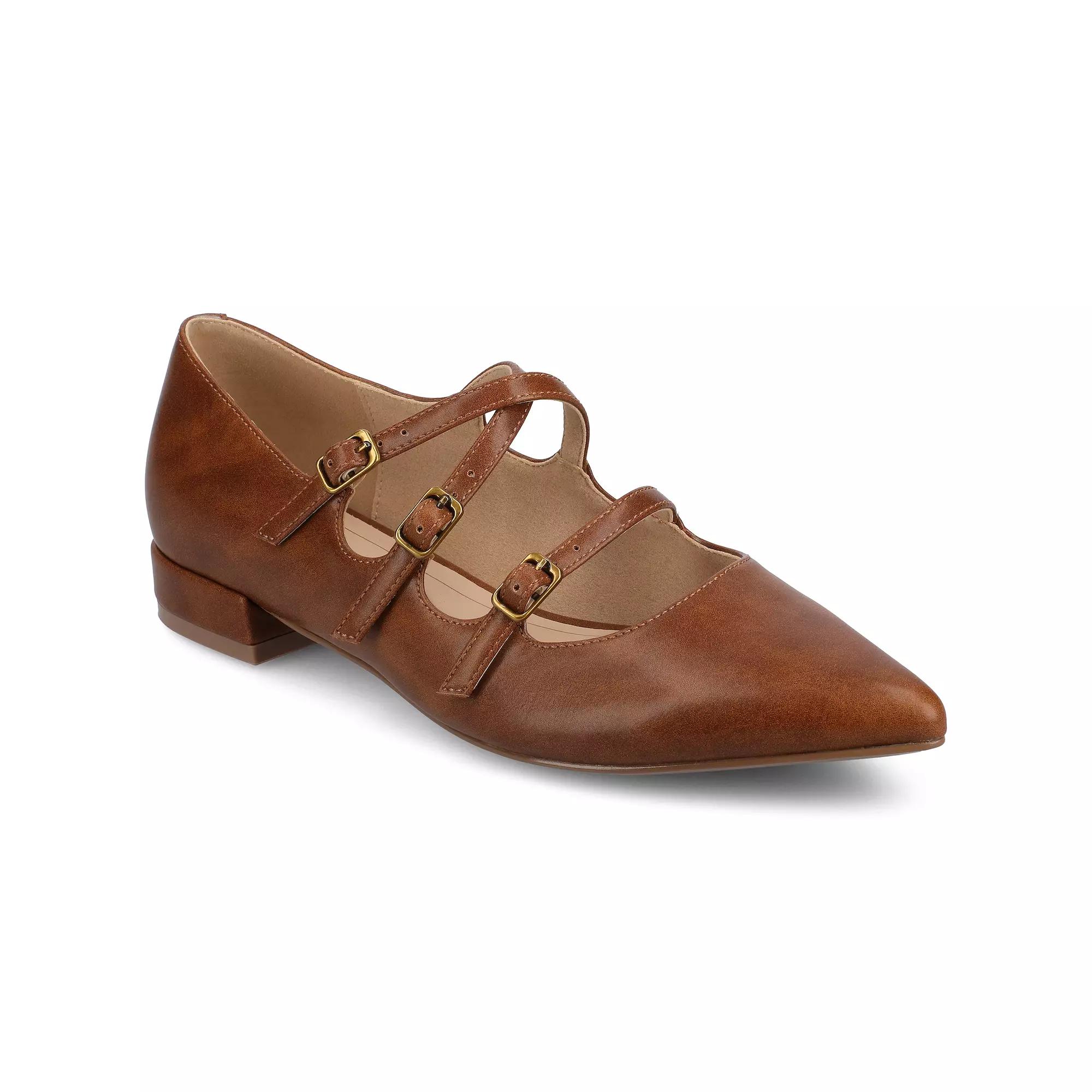 Discover the perfect blend of style and comfort with these charming ballet flats from Journee. Featuring a secure buckle closure and the innovative Journee Comfort System insole, these luxe pointed toe shoes are designed to keep you looking chic and feeling fabulous, no matter the occasion. Click this FOOTWEAR GUIDE to find the perfect fit and more! - https://www.kohls.com/feature/shoesizeguide.jsp. FEATURES: Comfortable insole. Secure buckle closure. DETAILS: Man-made lining, upper, & midsole, Rubber outsole, Pointed toe, Buckle closure, Foam footbed, 1-in. heel, Spot clean, Imported. Size: 11. Color: Cognac. Gender: female. Age Group: adult. Material: SYNTHETIC.