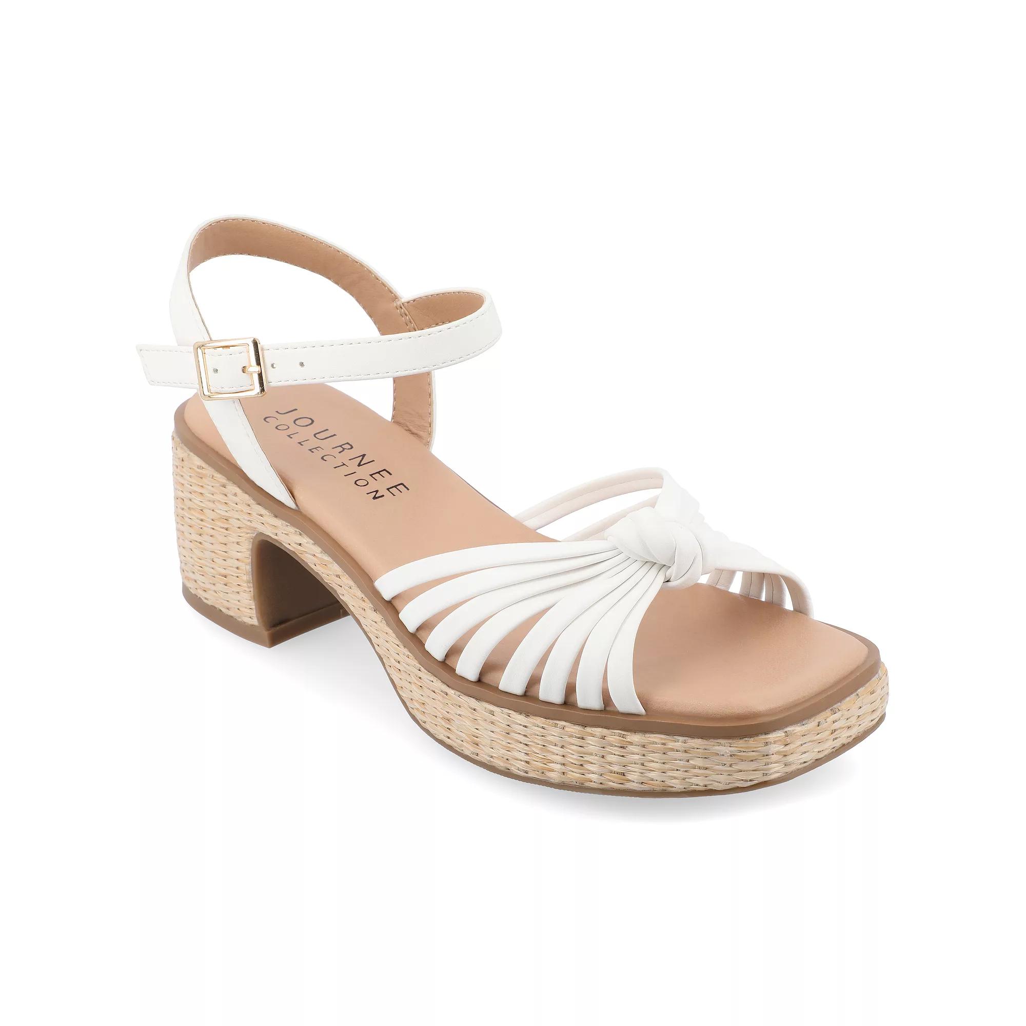 Enjoy warm weather and sunshine in style with these Hally sandals from Journee Collection, with Tru Comfort Foam technology that will keep your feet comfortable all day long. Click this FOOTWEAR GUIDE to find the perfect fit and more! Enjoy warm weather and sunshine in style with these Hally sandals from Journee Collection, with Tru Comfort Foam technology that will keep your feet comfortable all day long. Click this FOOTWEAR GUIDE to find the perfect fit and more! FEATURES Tru Comfort Foam footbed Raffia covered platform outsole Block heel Multi strap and knot designDETAILS Faux leather upper, lining & midsole Man-made outsole Open toe 2.25-in. heel 1-in. platform Spot clean Imported Buckle closure Size: 12. Color: Natural. Gender: female. Age Group: adult.