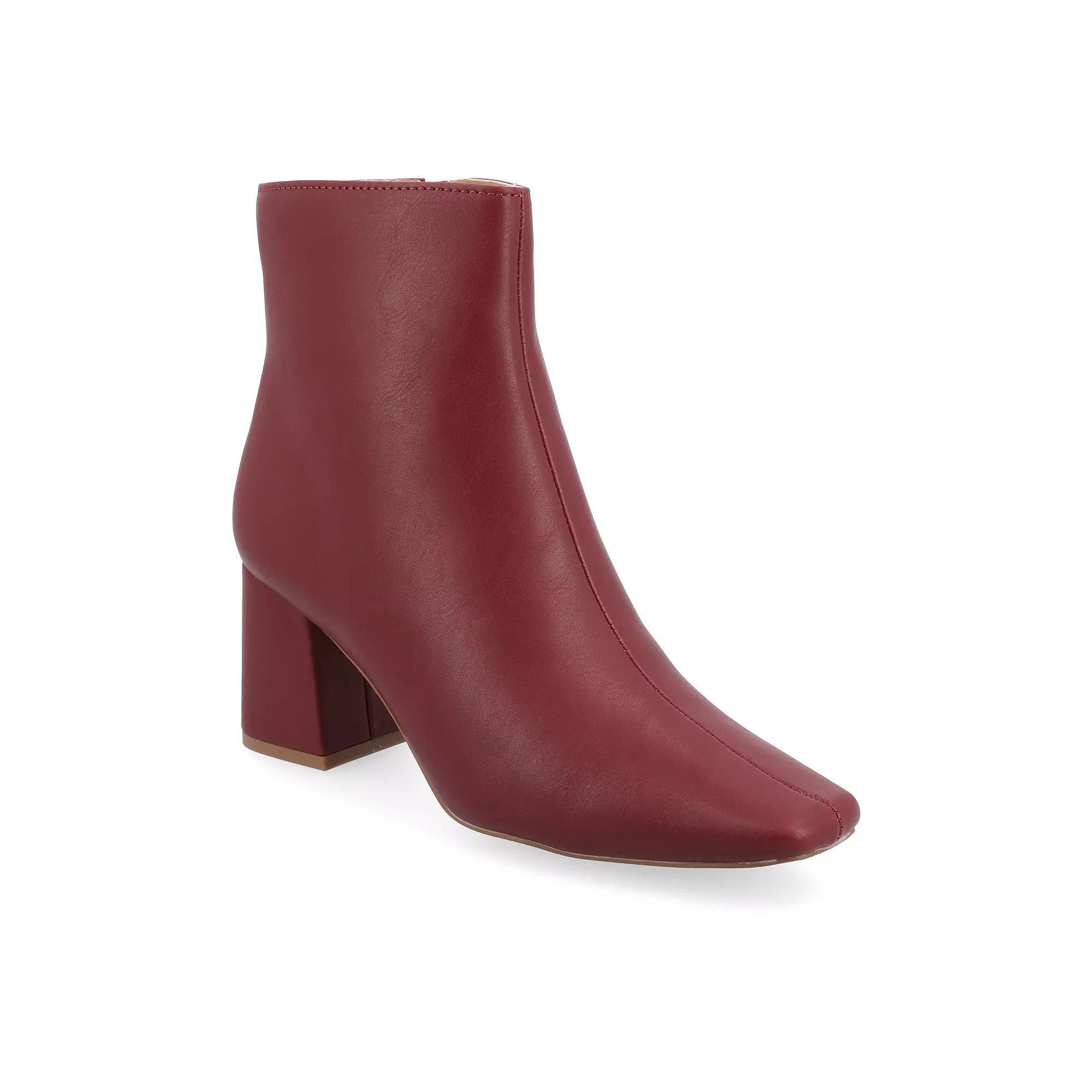 Meet your new confidence boost: the Haylinn by Journee. This square-toe bootie brings that effortlessly chic energy with sleek patent vegan leather that catches light (and compliments) all day long.The side zipper? Your morning routine's new best friend — because who has time for complicated when you're already running the world. That block heel paired with our 4mm Journee Comfort System Insole becomes your secret weapon for conquering everything from boardroom presentations to after-work cocktails.The square toe keeps you on-trend while the patent finish adds that perfect pop of polish to everything from tailored trousers to your favorite weekend jeans. Think of Haylinn as your style translator — taking any outfit from good to "wait, where did you get those?"Because looking put-together shouldn't feel like work — it should feel like you, only elevated. With comfort that keeps up and style that stands out, these booties don't just complete your look, they complete your day. Click this Footwear Guide to find the perfect fit and more! - https://www.kohls.com/feature/shoesizeguide.jsp. BOOT FEATURES: Covered block heel, footbed, Zipper for easy on and off. BOOT CONSTRUCTION: Faux leather upper, Fabric lining, Manmade outsole. BOOT DETAILS: Square toe, Zipper closure, footbed, 2.5-in. heel, 5-in. shaft, 10-in. circumference. Size: 7.5. Color: Brick. Gender: female. Age Group: adult. Material: SYNTHETIC.