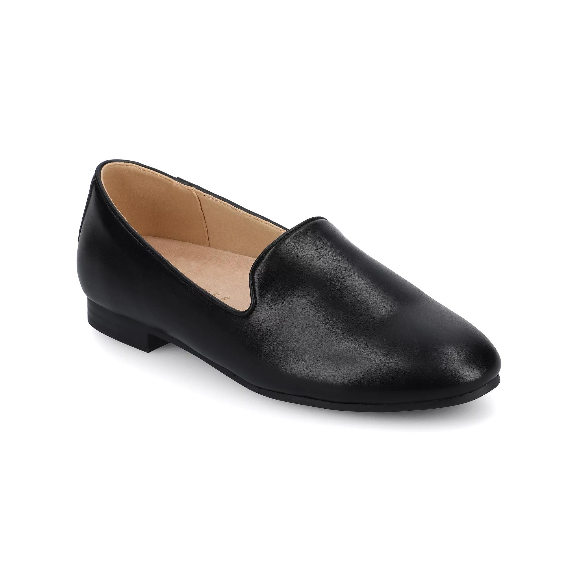 The Ishani ballet flat by Journee is the perfect choice for busy mornings, offering effortless style with its sleek faux leather and classic almond-toe design. Its slip-on construction and flat sole make it ideal for commuting, running errands, or heading to the office. With the signature 4 mm Journee Comfort System™ Insole, these flats keep you comfortable and polished from your first coffee to your evening unwind. Crafted with exceptional quality and designed for an ideal fit, this style brings together trend-forward aesthetics and lasting comfort. Click this FOOTWEAR GUIDE to find the perfect fit and more! - https://www.kohls.com/feature/shoesizeguide.jsp. FEATURES: Comfortable insole. DETAILS: Man-made lining, upper, & midsole, Rubber outsole, Almond toe, Slip-on, Foam footbed, Spot clean, Imported. Size: 9.5 Wide. Color: Black. Gender: female. Age Group: adult. Material: SYNTHETIC.