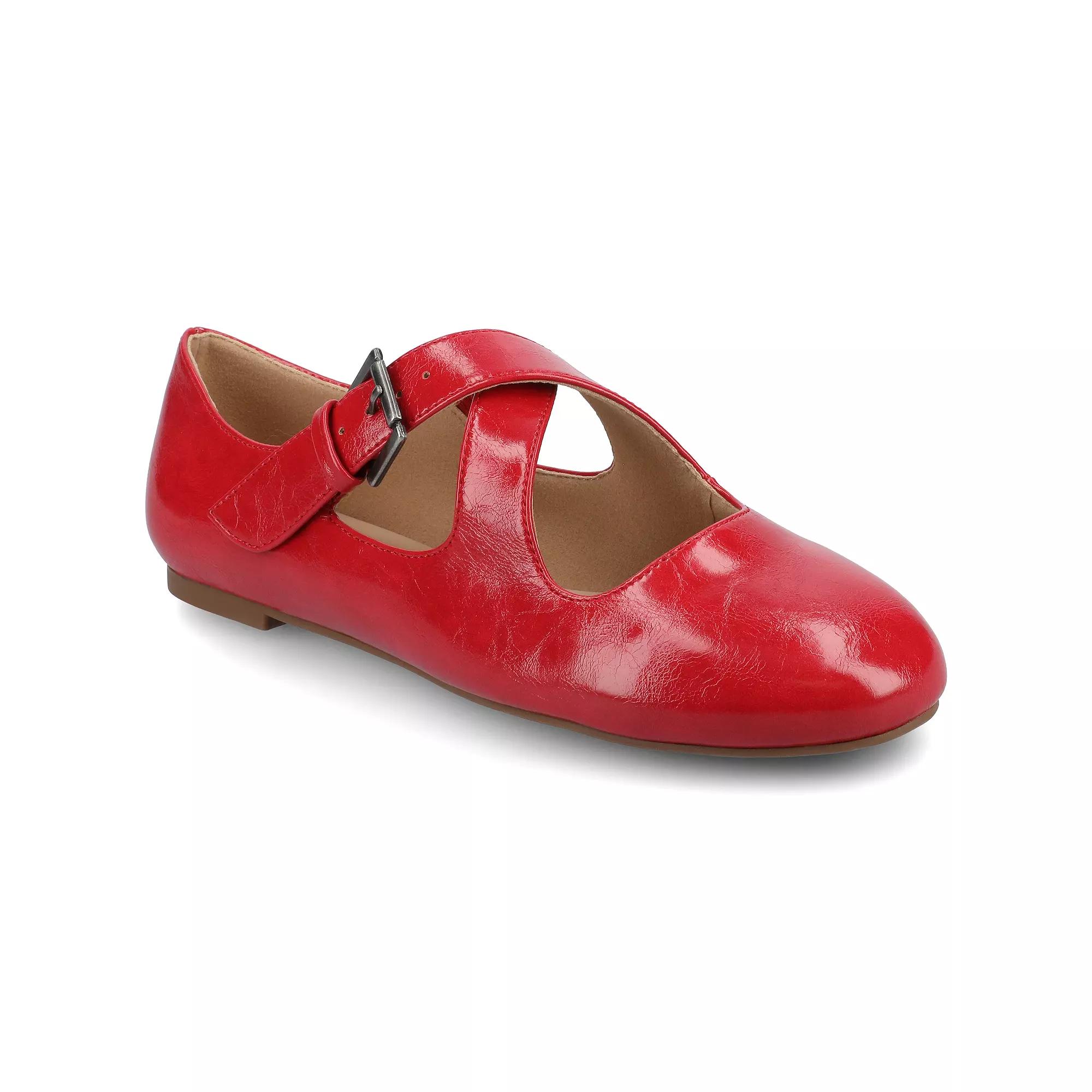 Embrace effortless style with these chic flats from Journee, showcasing a lovely almond toe shape and a secure buckle closure that adds a touch of elegance. The Journee Comfort System insole ensures all-day comfort, making them the perfect choice for both casual outings and longer days on your feet. Click this FOOTWEAR GUIDE to find the perfect fit and more! - https://www.kohls.com/feature/shoesizeguide.jsp. FEATURES: Comfortable insole. Secure buckle closure. DETAILS: Man-made lining, upper, & midsole, Rubber outsole, Almond toe, Buckle closure, Foam footbed, Spot clean, Imported. Size: 6. Color: Red. Gender: female. Age Group: adult. Material: SYNTHETIC.