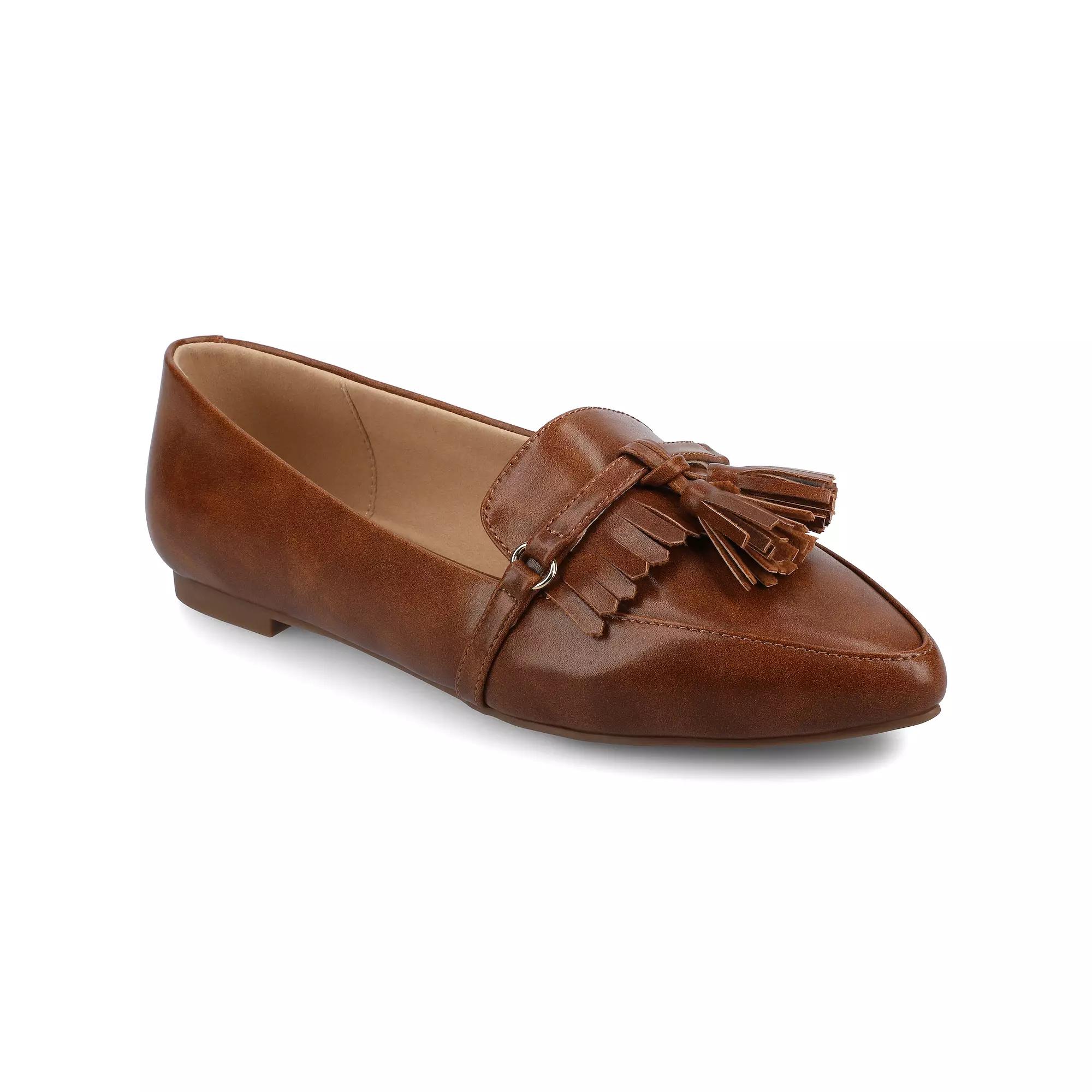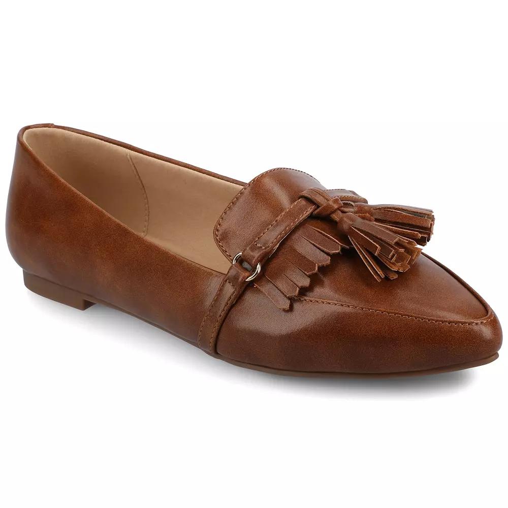 Discover effortless elegance with these chic loafers from Journee. Featuring a stylish pointed toe and trendy tassel detail, they offer the perfect blend of comfort and sophistication, making them ideal for both casual outings and formal settings. Slip into these versatile flats and elevate your look with ease! WC = Medium Width, Wide Calf. M XWC = Medium Width, Extra Wide Calf. W = Wide Width, Regular Calf. W WC = Wide Width, Wide Calf. W XWC = Wide Width, Extra Wide Calf. Click this FOOTWEAR GUIDE to find the perfect fit and more! - https://www.kohls.com/feature/shoesizeguide.jsp. FEATURES: Comfortable insole, Fit on WIDE SIZES ONLY is large. Please size down at least ½ size for a better fit. DETAILS: Man-made lining, upper, & midsole, Rubber outsole, Pointed toe, Slip-on, Foam footbed, Spot clean, Imported. Size: 10 Wide. Color: Cognac. Gender: female. Age Group: adult. Material: SYNTHETIC.