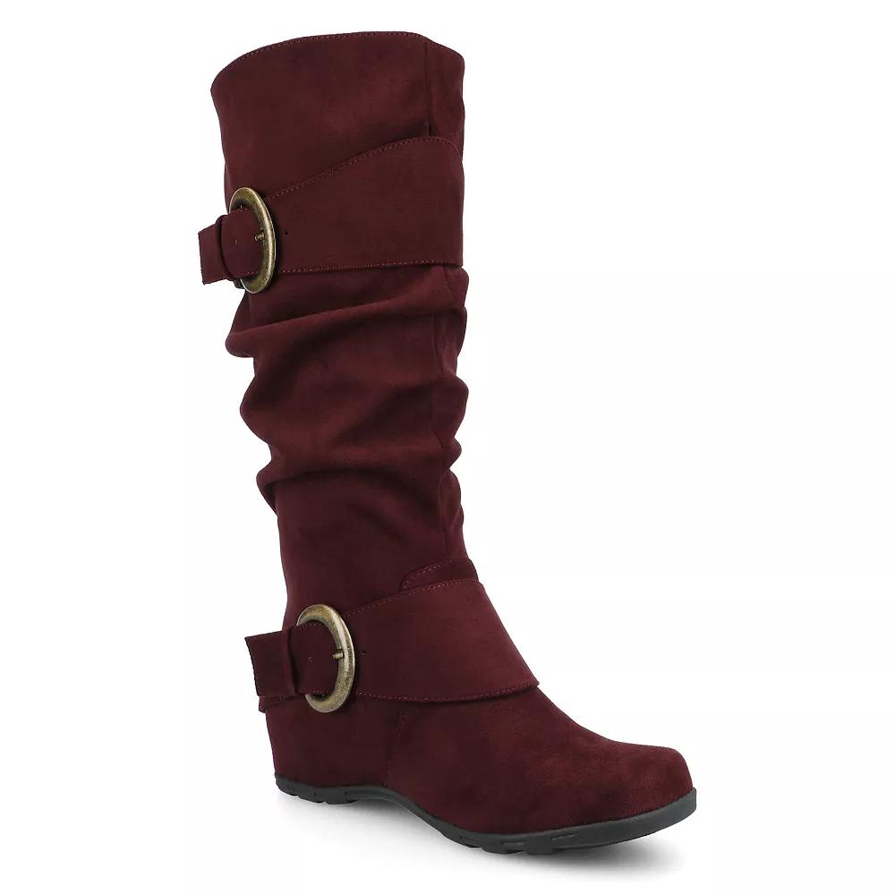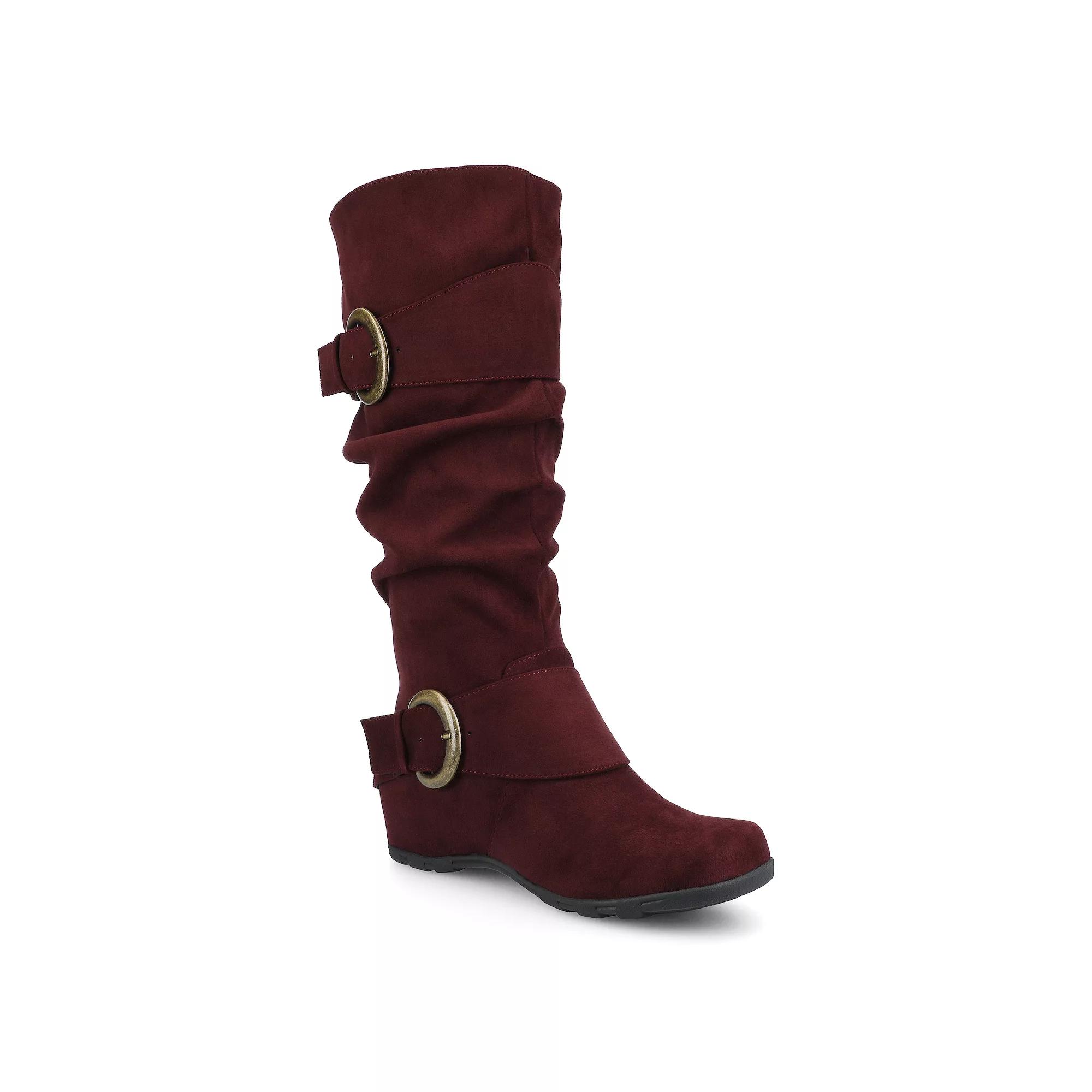 Featuring a stunning knee-high design, effortlessly complete your look with these women's Jester boots from Journee. WC = Medium Width, Wide Calf. M XWC = Medium Width, Extra Wide Calf. W = Wide Width, Regular Calf. W WC = Wide Width, Wide Calf. W XWC = Wide Width, Extra Wide Calf. Click this FOOTWEAR GUIDE to find the perfect fit and more! - https://www.kohls.com/feature/shoesizeguide.jsp. BOOT FEATURES: Slouched styling. Buckle strap details. BOOT CONSTRUCTION: Faux-leather upper, Fabric lining, Manmade outsole. BOOT DETAILS: Rounded toe, Zipper closure, Lightly padded footbed, 1/4-in. heel, 14-in. shaft, 16-in. circumference, 18-in. WC circumference. 19.5-in. XWC circumference. Size: 8.5 Wc. Color: Oxblood. Gender: female. Age Group: adult. Material: FAUX SUEDE.