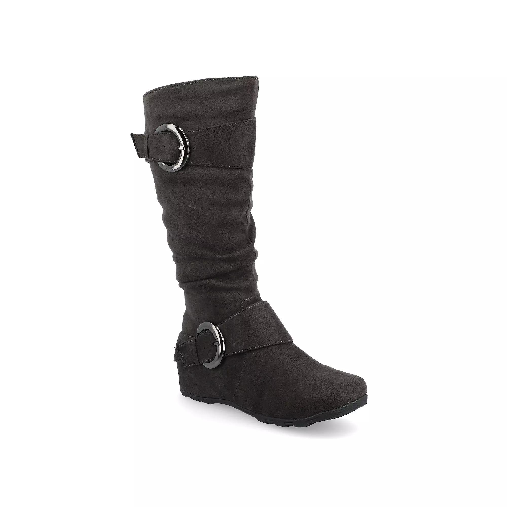 Featuring a stunning knee-high design, effortlessly complete your look with these women's Jester boots from Journee. WC = Medium Width, Wide Calf. M XWC = Medium Width, Extra Wide Calf. W = Wide Width, Regular Calf. W WC = Wide Width, Wide Calf. W XWC = Wide Width, Extra Wide Calf. Click this FOOTWEAR GUIDE to find the perfect fit and more! - https://www.kohls.com/feature/shoesizeguide.jsp. BOOT FEATURES: Slouched styling. Buckle strap details. BOOT CONSTRUCTION: Faux-leather upper, Fabric lining, Manmade outsole. BOOT DETAILS: Rounded toe, Zipper closure, Lightly padded footbed, 1/4-in. heel, 14-in. shaft, 16-in. circumference, 18-in. WC circumference. 19.5-in. XWC circumference. Size: 8 M XWc. Color: Gray. Gender: female. Age Group: adult. Pattern: Solid. Material: FAUX SUEDE.