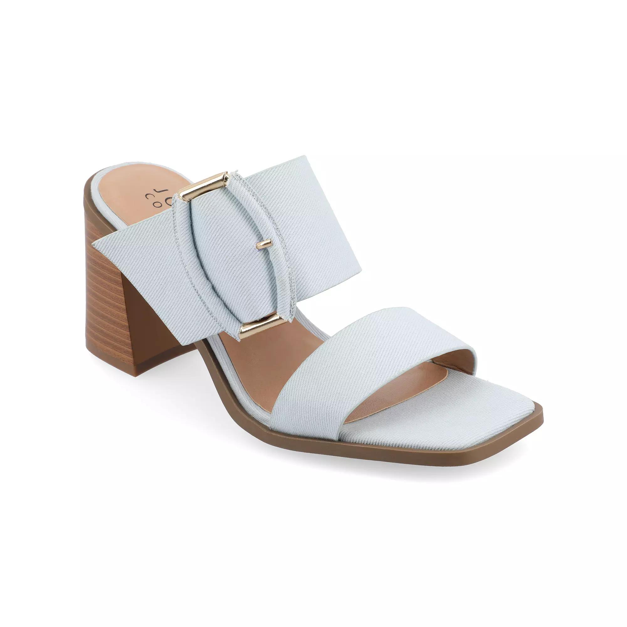 The Junie slip-on heel sandal from Journee Collection is a chic and convenient choice with its 3 stacked heel and effortless slip-on design. The multi-strap detailing adds a trendy touch to the open-toe style, creating a versatile and fashionable look. Crafted with faux leather lining, man-made upper and outer sole materials, and featuring a 4mm Tru Comfort Foam footbed, these sandals not only showcase style but also prioritize comfort.