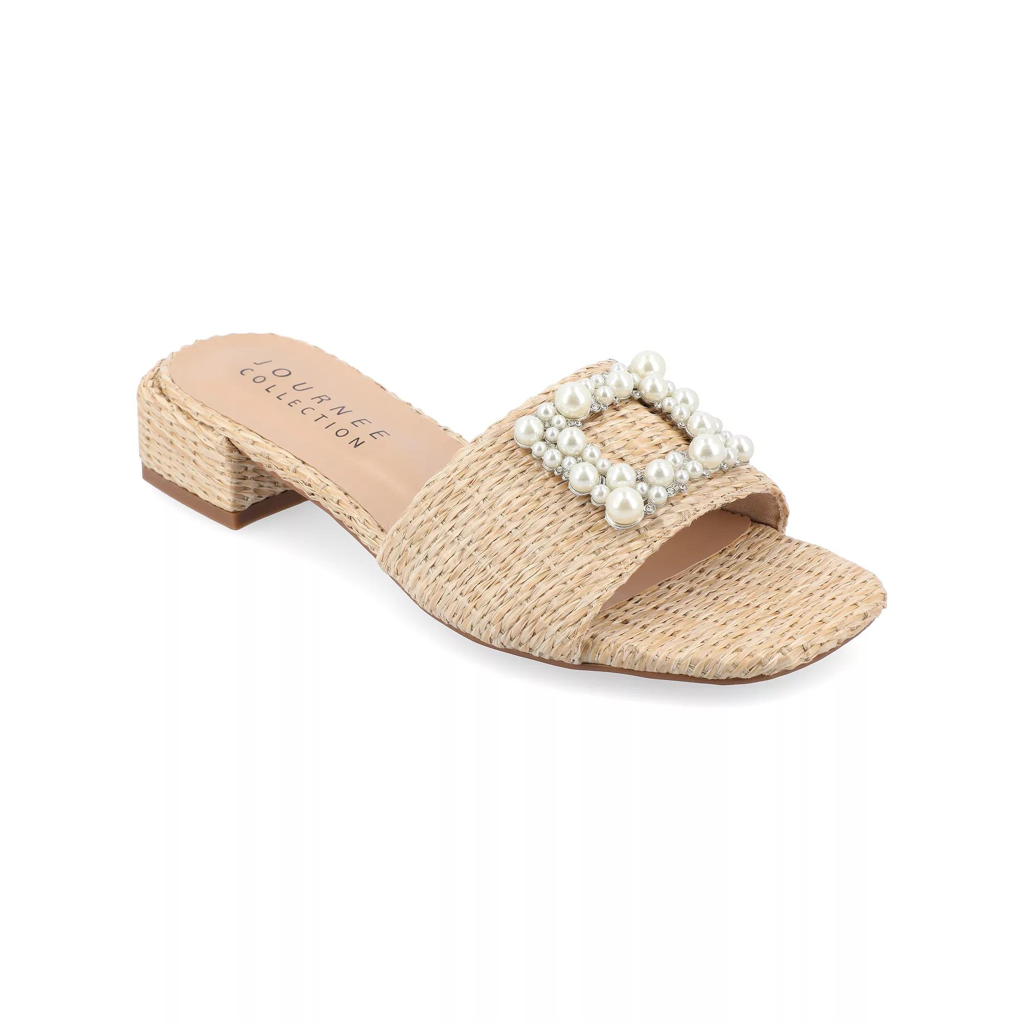 Take on the day in style and comfort with these womens Open Toe Sandals from Journee Collections.Click this FOOTWEAR GUIDE to find the perfect fit and more! Take on the day in style and comfort with these womens Open Toe Sandals from Journee Collections.Click this FOOTWEAR GUIDE to find the perfect fit and more! FEATURES Buckle detailing Comfortable foam footbed Square toeDETAILS Upper and outsole: Man-made Midsole and lining: Faux leather Open toe Slip-on Foam footbed 1.25-in. heel height Spot clean Imported Size: 6. Color: Dark Beige. Gender: female. Age Group: adult.