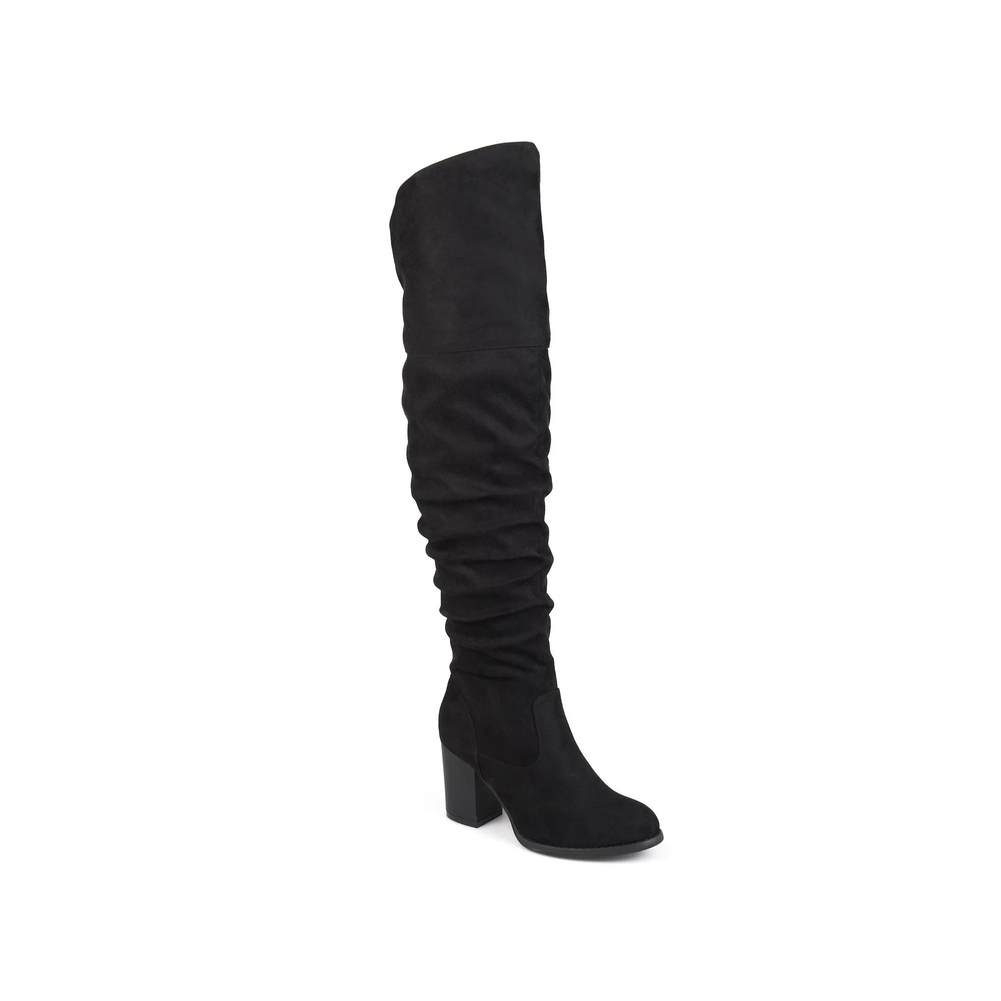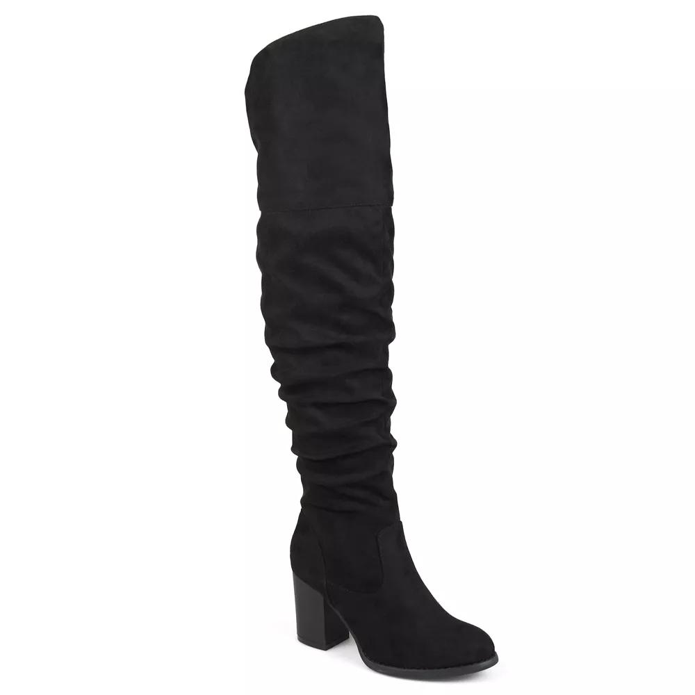 These Kaison ruched tall boots by Journee are sure to garner complements. WC = Medium Width, Wide Calf. M XWC = Medium Width, Extra Wide Calf. W = Wide Width, Regular Calf. W WC = Wide Width, Wide Calf. W XWC = Wide Width, Extra Wide Calf. Watch the product video here. - https://media.kohlsimg.com/is/content/kohls/mp4/1708/KOHLSBootFitGuide_VDEO.mp4. Click this FOOTWEAR GUIDE to find the perfect fit and more! - https://www.kohls.com/feature/shoesizeguide.jsp. BOOT FEATURES: Ruched design. Block heel. Traction sole. BOOT CONSTRUCTION: Faux suede upper. Fabric lining. Manmade outsole. BOOT DETAILS: Round toe. Zipper closure. Padded footbed. 2.9-in. heel. 0.27-in. platform. 24-in. shaft. 16-in. circumference. 18-in. wide calf boot circumference. 19-in. extra wide calf boot circumference. Size: 8 W XWc. Color: Black. Gender: female. Age Group: adult. Material: SYNTHETIC.