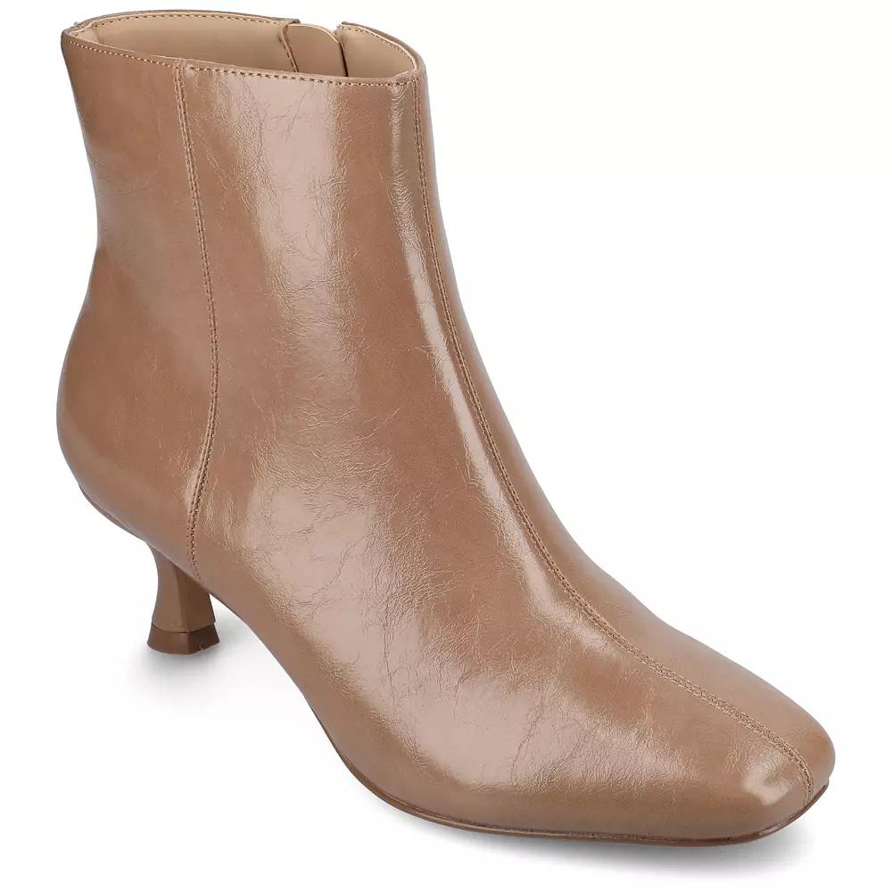 Show off your stylish, versatile vibe with these Kelssa ankle boots by Journee. Click this FOOTWEAR GUIDE to find the perfect fit and more! - https://www.kohls.com/feature/shoesizeguide.jsp. SHOE FEATURES: footbed, Center seam detail, Kitten heel. SHOE CONSTRUCTION: Faux-leather upper, Fabric lining, Polyurethane outsole. SHOE DETAILS: Square toe, Side zipper closure, 2-in. heel, 5-in. shaft height, 10.5-in. circumference, footbed, Spot clean, Imported. Size: 9.5 Wide. Color: Patent Taupe. Gender: female. Age Group: adult. Material: FAUX LEATHER.