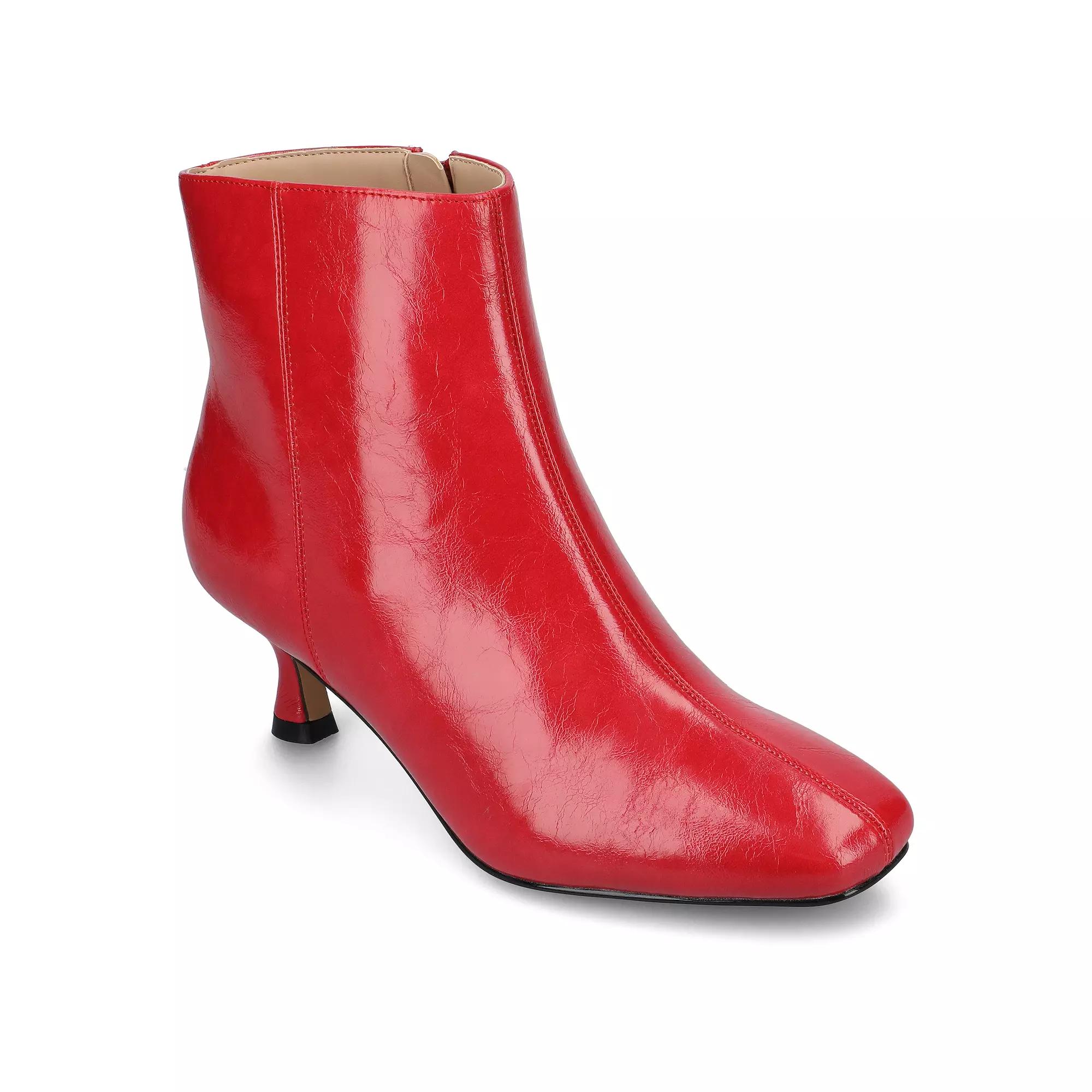 Show off your stylish, versatile vibe with these Kelssa ankle boots by Journee. Click this FOOTWEAR GUIDE to find the perfect fit and more! - https://www.kohls.com/feature/shoesizeguide.jsp. SHOE FEATURES: footbed, Center seam detail, Kitten heel. SHOE CONSTRUCTION: Faux-leather upper, Fabric lining, Polyurethane outsole. SHOE DETAILS: Square toe, Side zipper closure, 2-in. heel, 5-in. shaft height, 10.5-in. circumference, footbed, Spot clean, Imported. Size: 8.5. Color: Patent Red. Gender: female. Age Group: adult. Material: FAUX LEATHER.