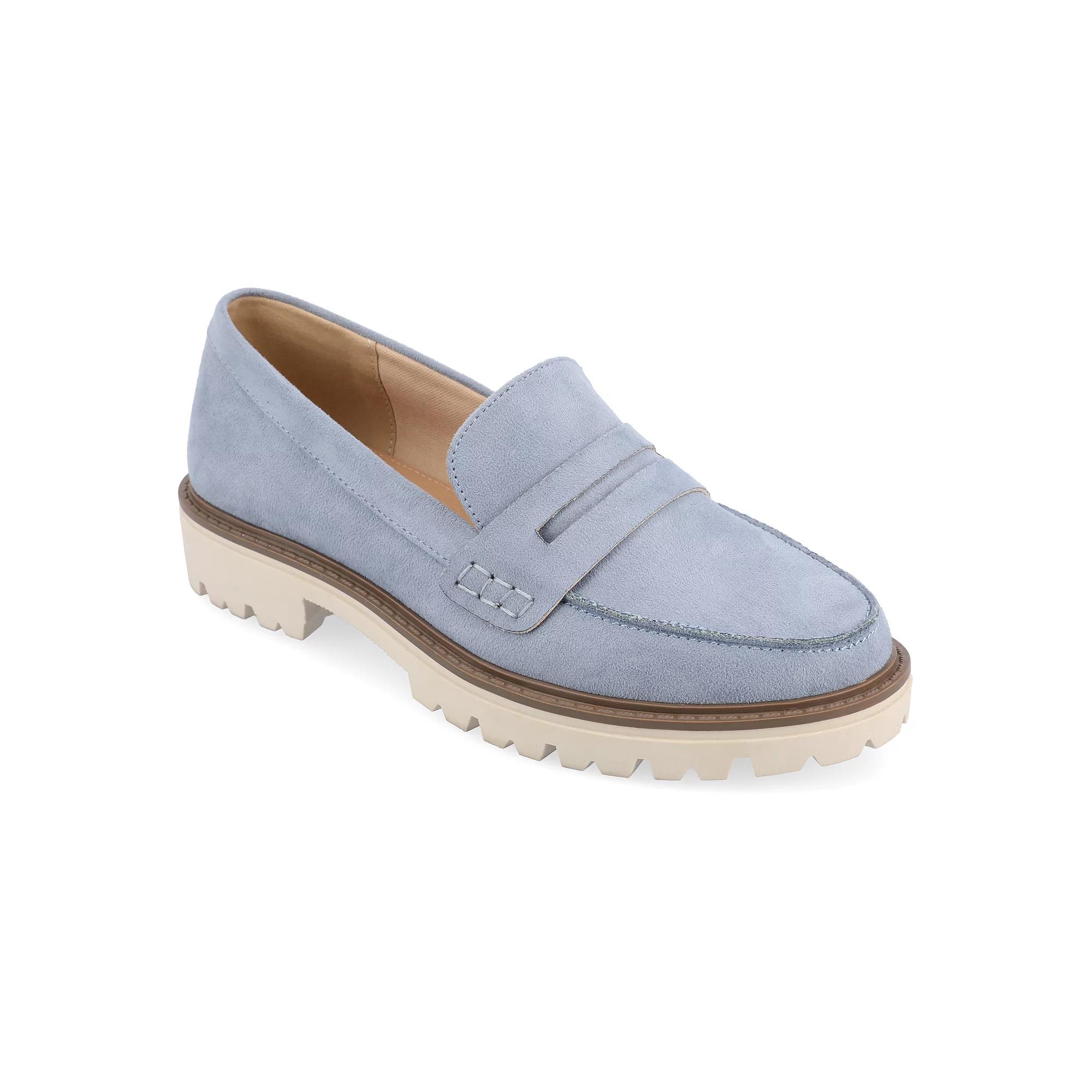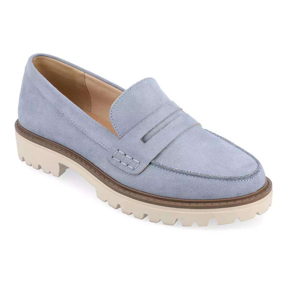 These Journee Kenly women's loafers are perfect for the office. Click this FOOTWEAR GUIDE to find the perfect fit and more! - https://www.kohls.com/feature/shoesizeguide.jsp. SHOE FEATURES: Penny slot overlay, footbed, Treaded outsole. SHOE CONSTRUCTION: Faux leather upper, Polyurethane lining, Manmade outsole. SHOE DETAILS: Round toe, Slip-on, footbed, 1-in. platform. Size: 10 N. Color: Blue. Gender: female. Age Group: adult. Material: SYNTHETIC.