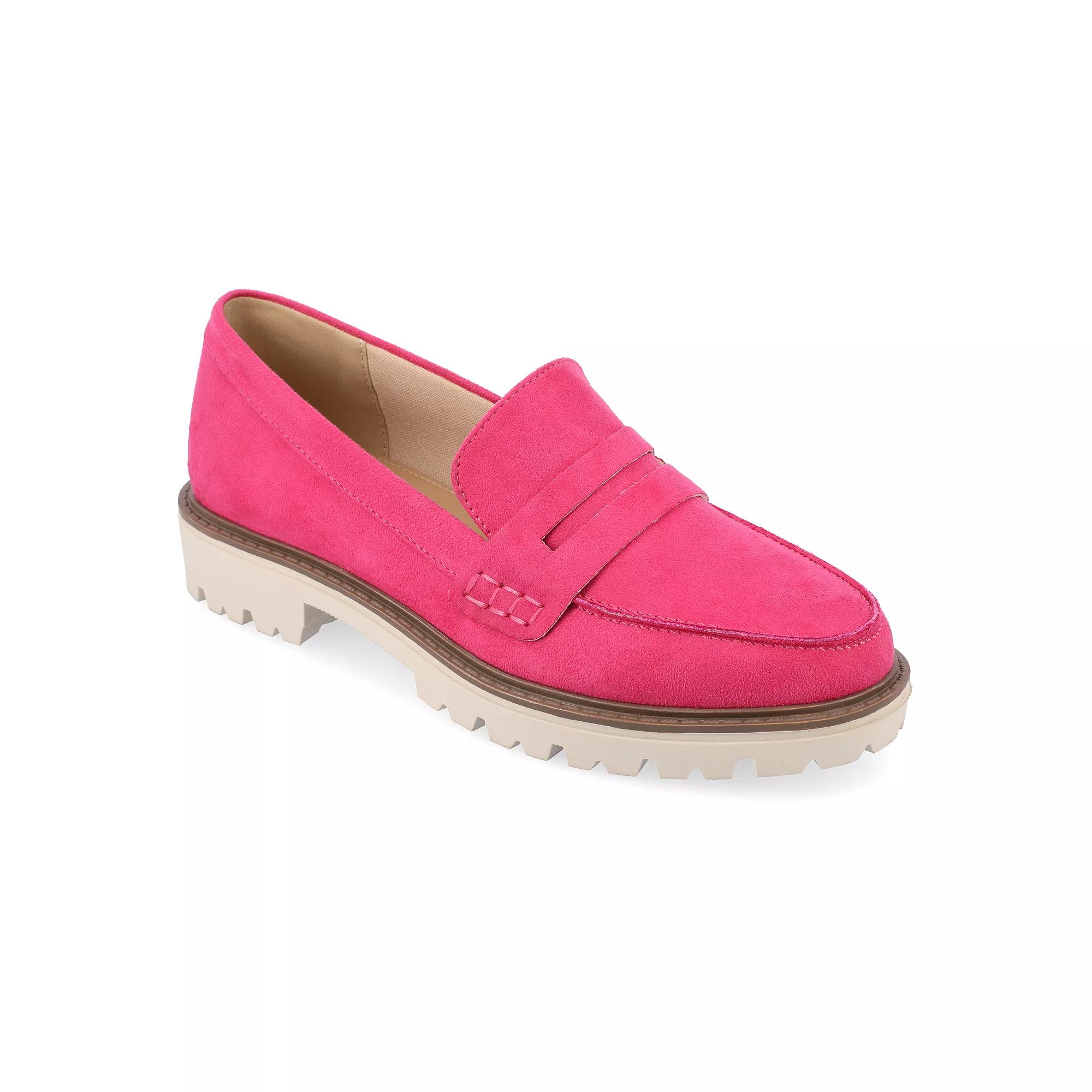 These Journee Kenly women's loafers are perfect for the office. Click this FOOTWEAR GUIDE to find the perfect fit and more! - https://www.kohls.com/feature/shoesizeguide.jsp. SHOE FEATURES: Penny slot overlay, footbed, Treaded outsole. SHOE CONSTRUCTION: Faux leather upper, Polyurethane lining, Manmade outsole. SHOE DETAILS: Round toe, Slip-on, footbed, 1-in. platform. Size: 9. Color: Pink. Gender: female. Age Group: adult. Material: SYNTHETIC.