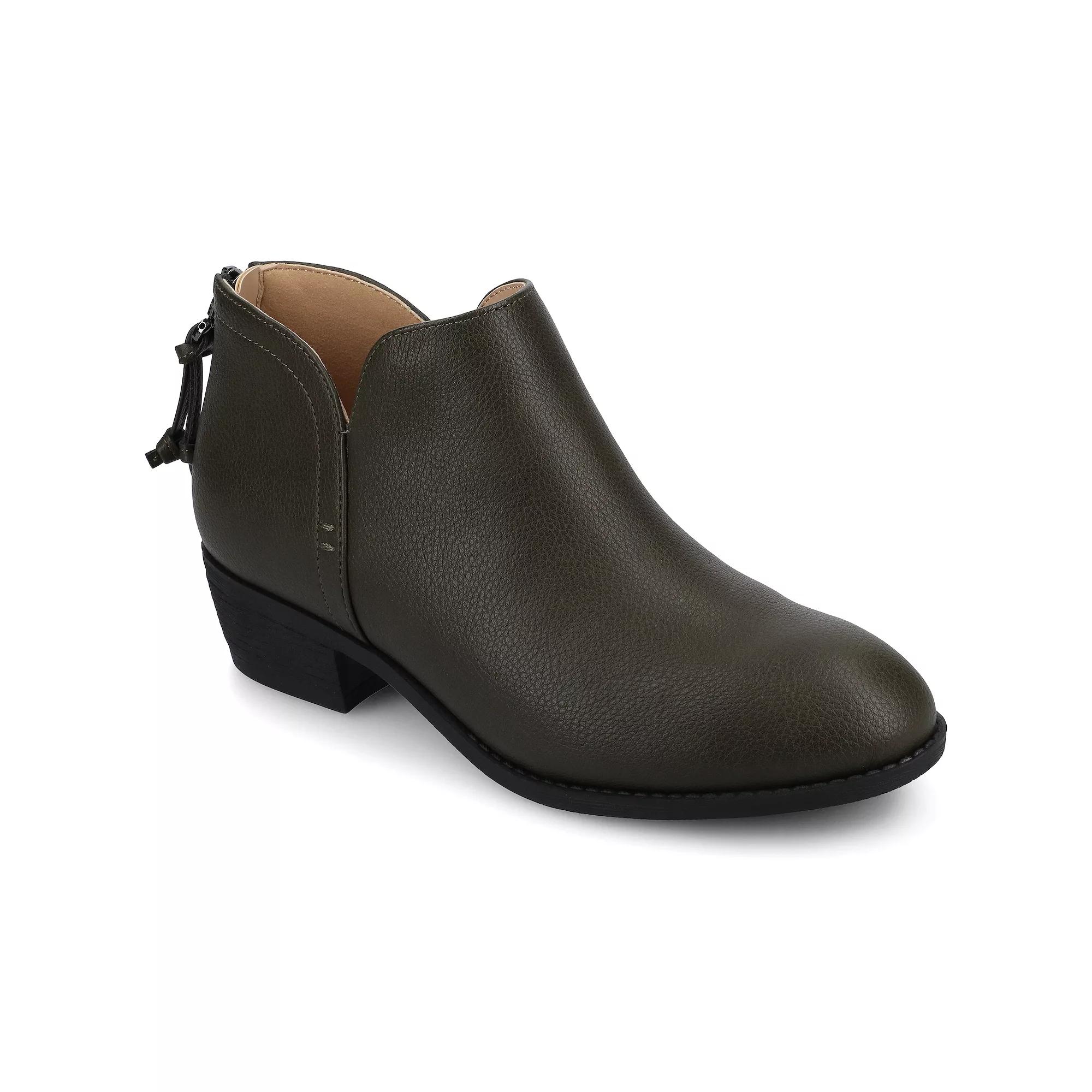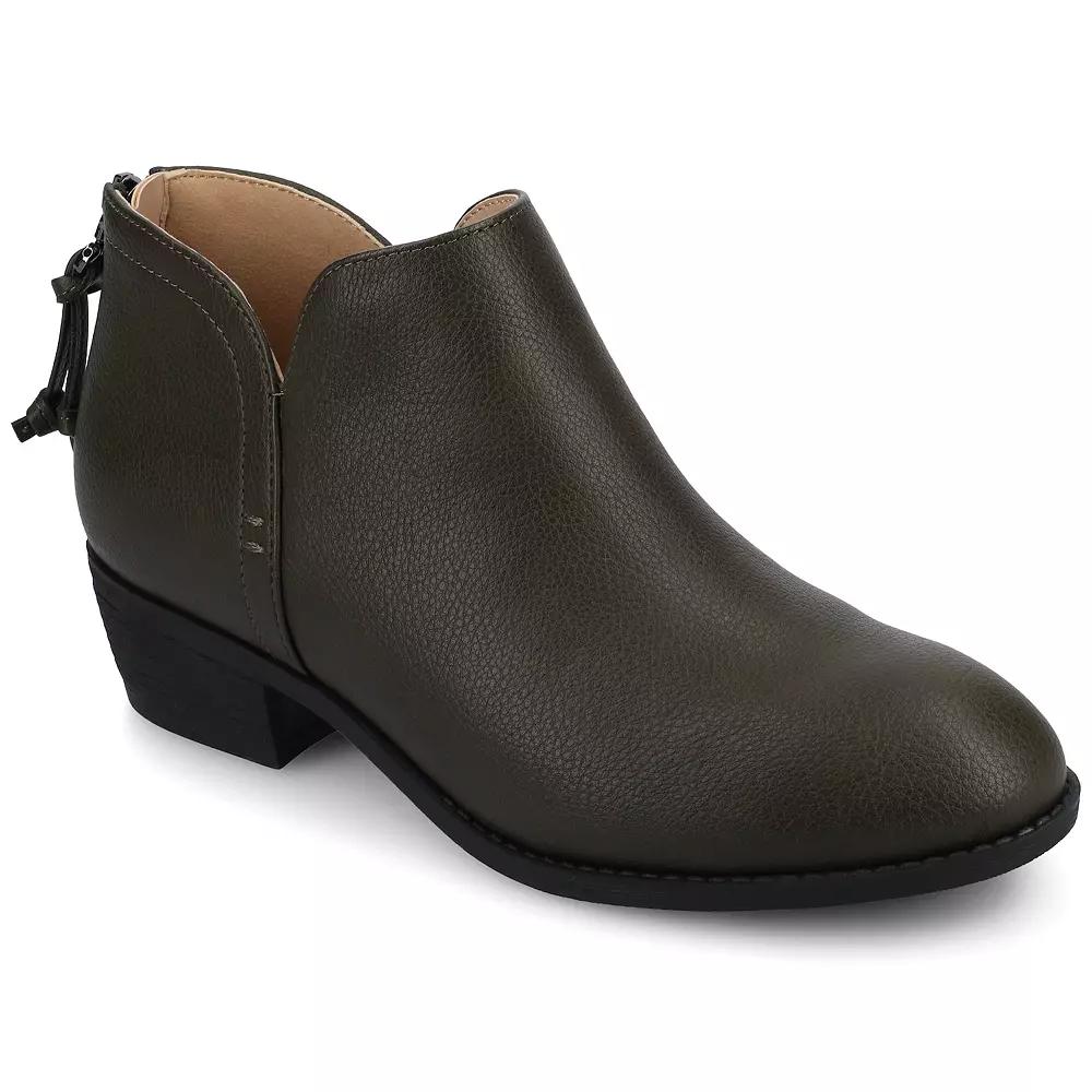 Meet the LIVVY side-split buckle bootie — where versatile meets irresistible. These beauties bring soft faux suede uppers, chic side-split details, and back zippers with tassel accents that whisper "put-together" without trying too hard.Here's the thing about the LIVVY: she's that friend who shows up looking effortless but somehow always gets the compliments. Morning presentations? She's got your back. Evening plans where you need to look like you didn't just survive a full day? She's already three steps ahead.The real superpower here isn't just the side-split detail that makes your legs look amazing (though it absolutely does). It's how the Journee Comfort System transforms these ankle booties into your secret weapon for days that demand everything from you. Because when your shoes can handle a 9-to-5 and still have you feeling fresh for whatever comes after, every step becomes a little victory lap.Whether you're pairing them with tailored trousers for that "I know what I'm doing" energy or throwing them on with your favorite denim for weekend plans, the LIVVY adapts to your life, not the other way around. Think of them as your style insurance policy — they make everything look intentional, even when you're winging it. Click this FOOTWEAR GUIDE to find the perfect fit and more! - https://www.kohls.com/feature/shoesizeguide.jsp. FEATURES: Ankle length, Wide width for comfort and stability, V-side slit and tasseled zipper for a stylish flair. DETAILS: Faux suede upper, Fabric lining, Man-made outsole and midosole, Round toe, Zipper closure, Polyurethane footbed, 1.5-in. heel, 0.5-in. platform, 3.5-in. shaft height, 11.5-in. shaft circumference, Spot clean, Imported. Size: 10 Wide. Color: Vintage Olive. Gender: female. Age Group: adult. Material: FAUX LEATHER.