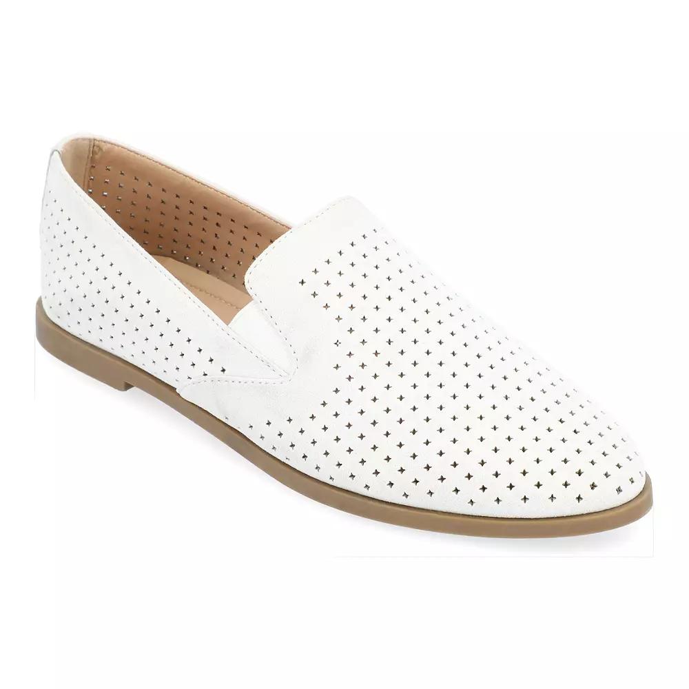 You'll adore the versatile style of these lovely Lucie flats from Journee. Click this FOOTWEAR GUIDE to find the perfect fit and more! - https://www.kohls.com/feature/shoesizeguide.jsp. SHOE FEATURES: Perforated accents, Comfort Foam insole, Traction sole. SHOE CONSTRUCTION: Faux leather upper, Polyurethane lining, Manmade, rubber outsole. SHOE DETAILS: Almond toe, Slip-on, Padded footbed. Size: 9 Wide. Color: White. Gender: female. Age Group: adult. Material: SYNTHETIC.