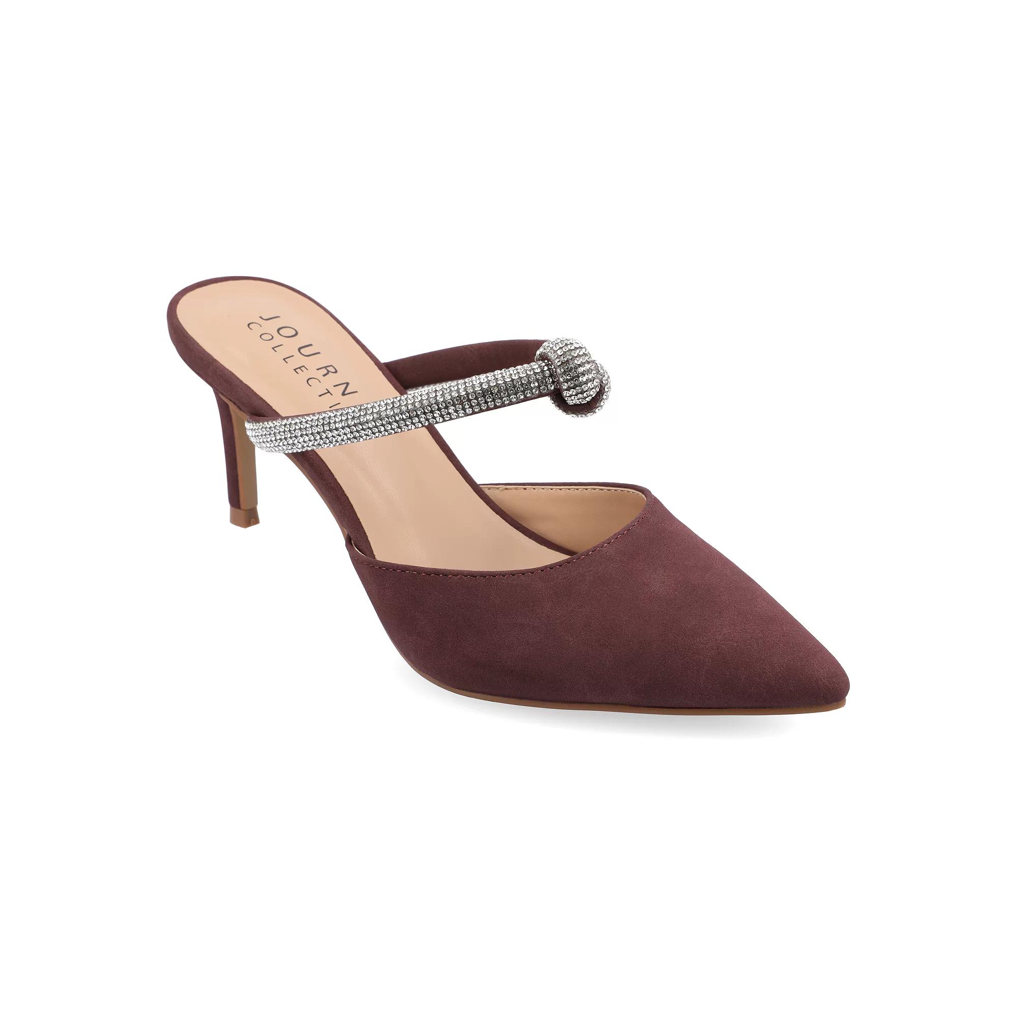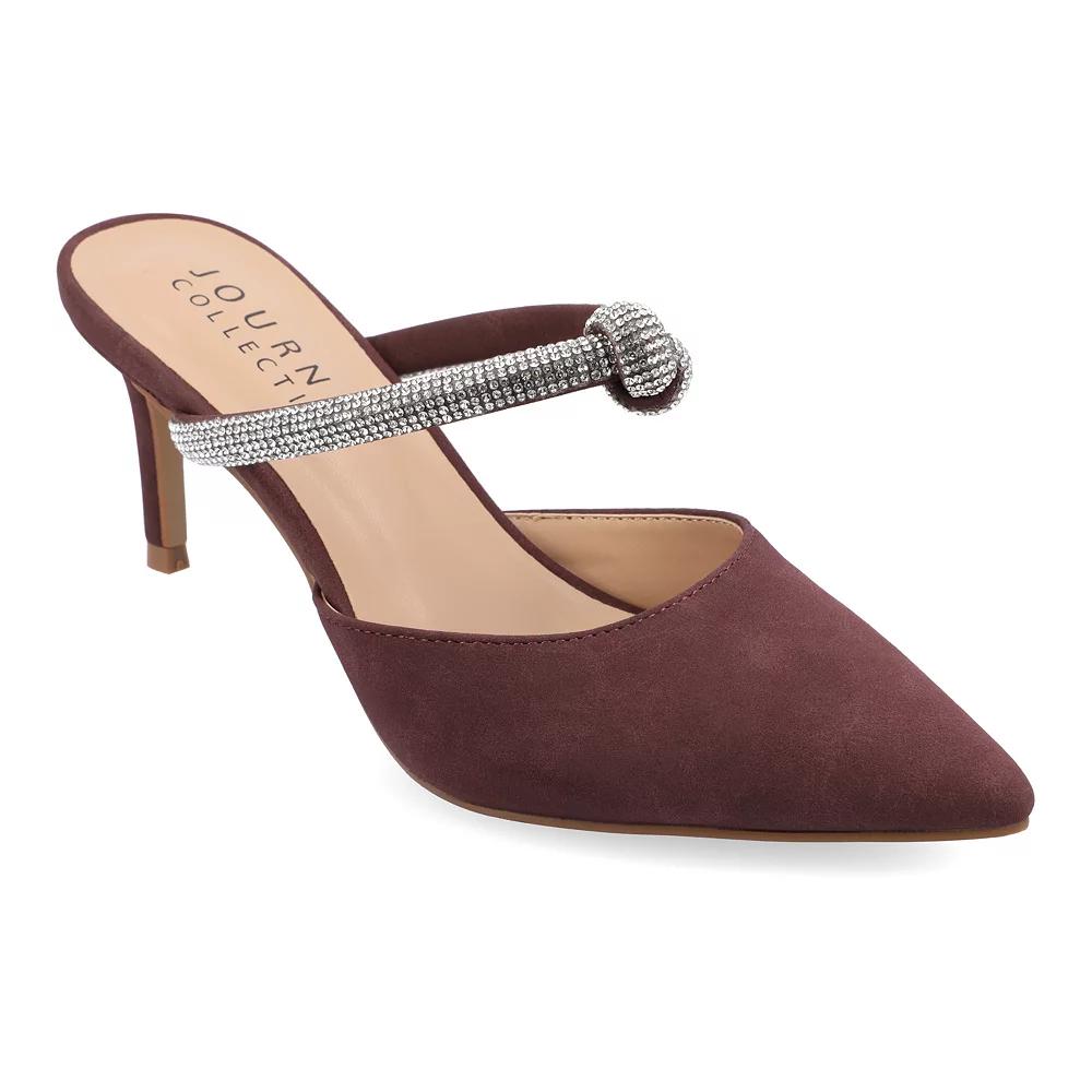 These Journee Collection Lunna womens heels will add an elegant touch to your looks. Click this FOOTWEAR GUIDE to find the perfect fit and more! SHOE FEATURES Knotted rhinestone strap design Stiletto heelSHOE CONSTRUCTION Faux leather upper Polyurethane lining Manmade outsoleSHOE DETAILS Pointed toe Slip-on Padded footbed 3-in. heel Size: 5.5. Color: Dark Red. Gender: female. Age Group: adult.