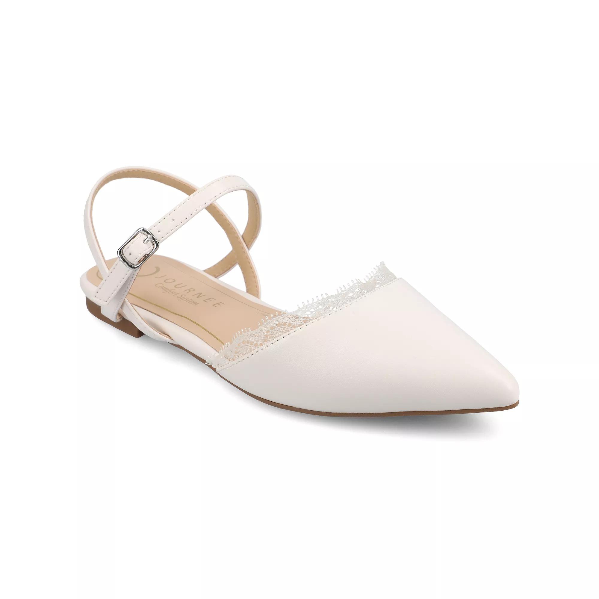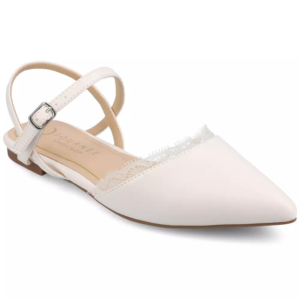 Finish off any outfit with these Journee Martine women's SuperNatural Shades dress flats. Click this FOOTWEAR GUIDE to find the perfect fit and more! - https://www.kohls.com/feature/shoesizeguide.jsp. FEATURES: Elegant design, for all day comfort, Buckle closure for a secure fit. DETAILS: Faux leather upper, lining and midsole, Man-made outsole, Pointed toe, Buckle closure, footbed, Spot clean, Imported. Size: 6.5. Color: Bone Lace. Gender: female. Age Group: adult.