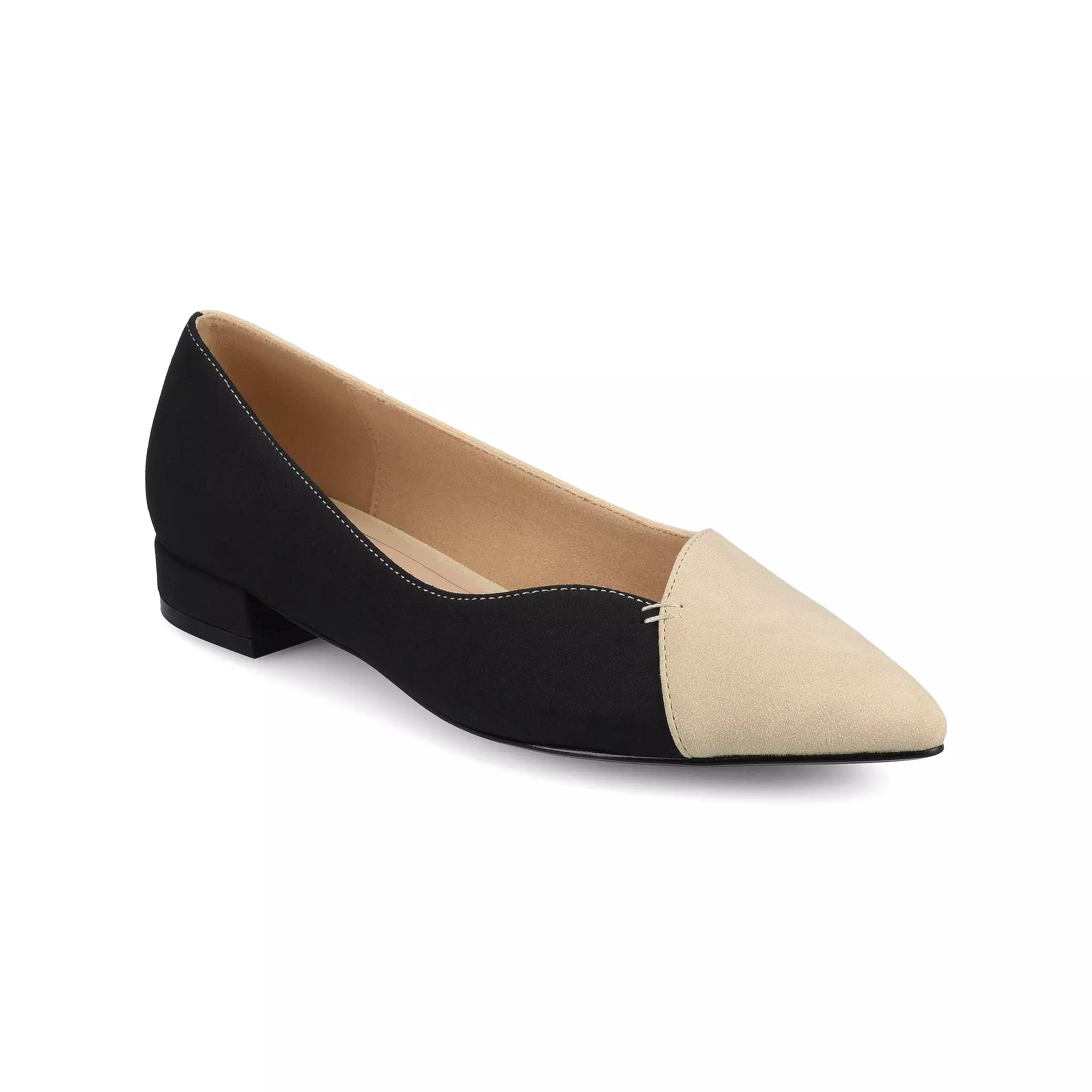 You'll love the way these women's slip-on flats rom Journee look and feel! Click this FOOTWEAR GUIDE to find the perfect fit and more! - https://www.kohls.com/feature/shoesizeguide.jsp. DETAILS: Synthetic upper, outsole, midsole and lining, Pointed toe, Slip-on, Polyurethane footbed, 1-in. heel height, Spot clean, Imported. Size: 10. Color: Black Sand. Gender: female. Age Group: adult.