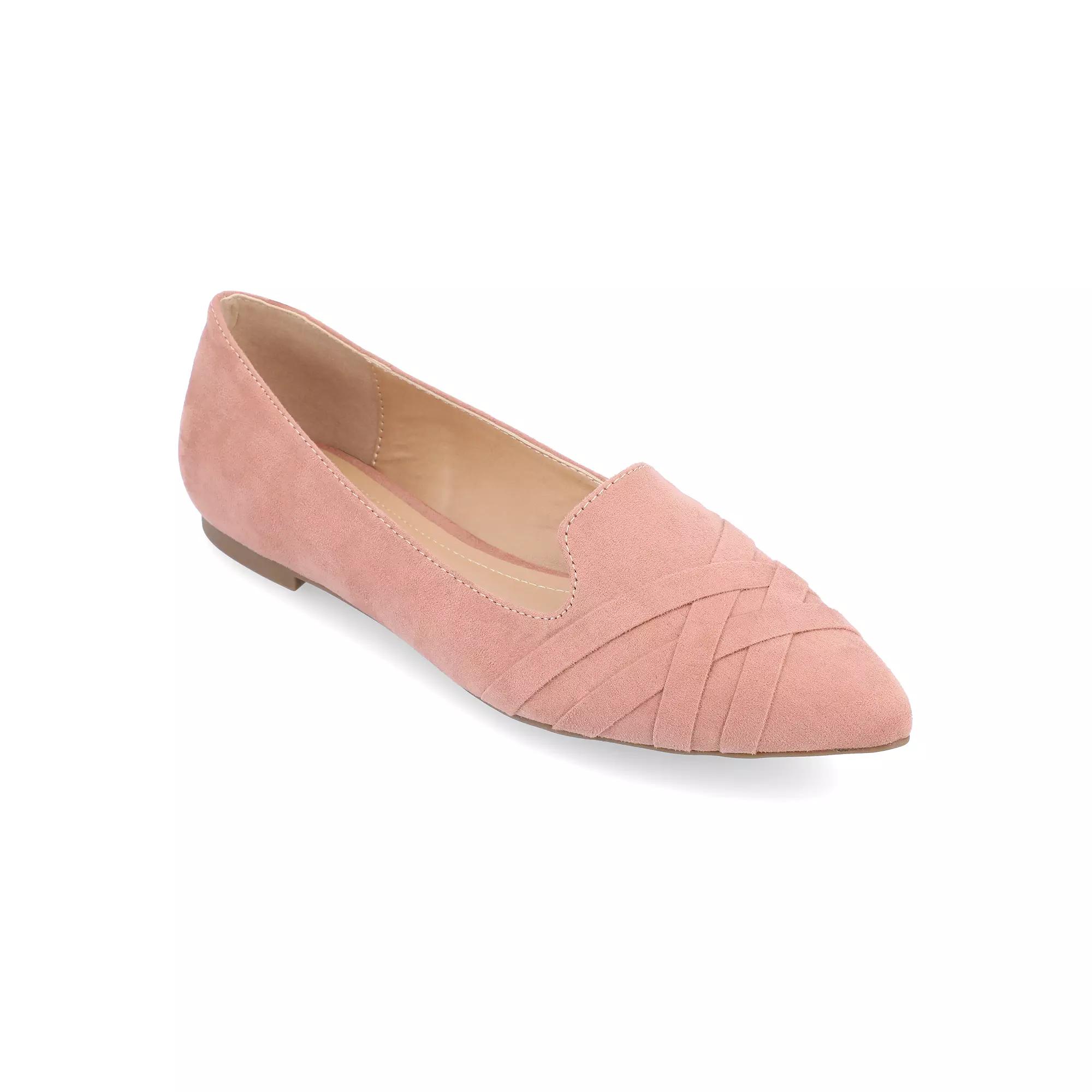Embellish your ensemble with the eye-catching style of these Journee Mindee flats. Click this FOOTWEAR GUIDE to find the perfect fit and more! - https://www.kohls.com/feature/shoesizeguide.jsp. SHOE FEATURES. Strappy crisscross design, Durable traction sole. SHOE CONSTRUCTION. Faux suede upper, Fabric lining, Manmade, rubber outsole. SHOE DETAILS. Pointed toe, Slip-on, Padded footbed. Size: 6.5. Color: Blush. Gender: female. Age Group: adult. Material: OTHER MATERIAL.