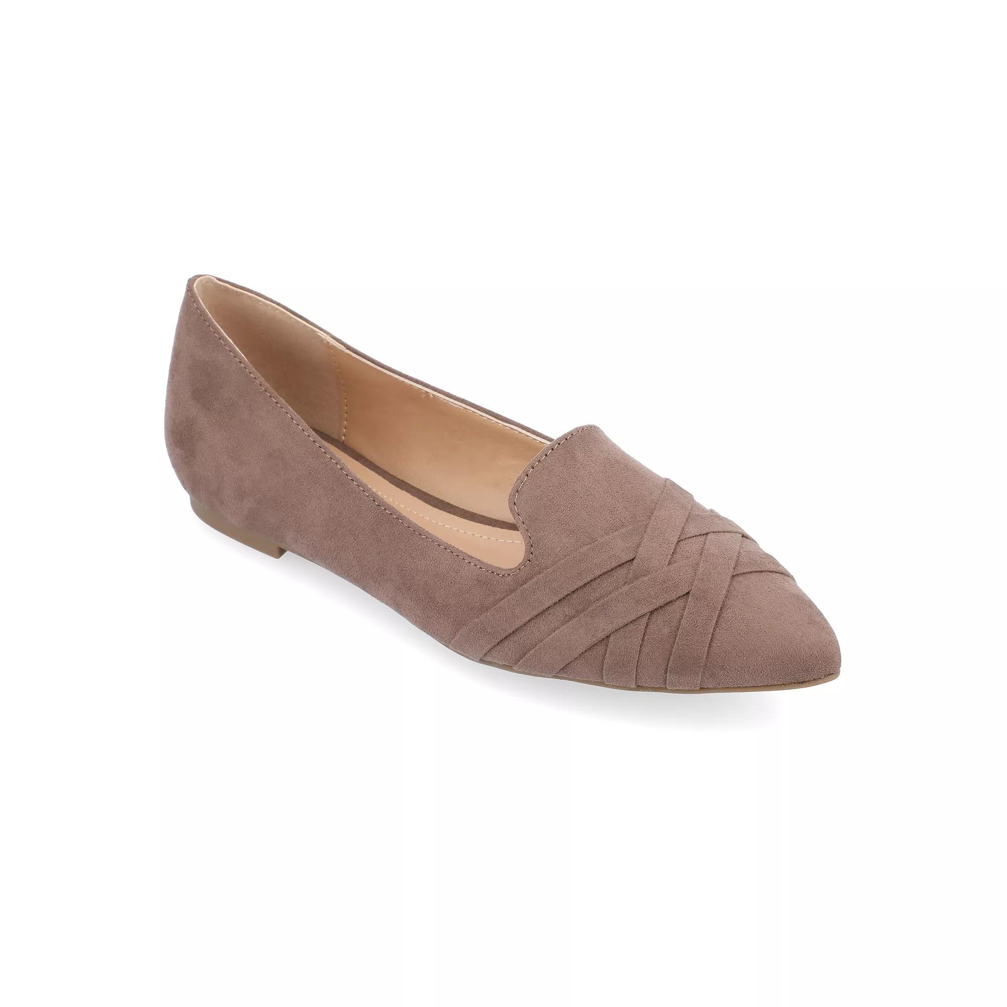 Embellish your ensemble with the eye-catching style of these Journee Mindee flats. Click this FOOTWEAR GUIDE to find the perfect fit and more! - https://www.kohls.com/feature/shoesizeguide.jsp. SHOE FEATURES. Strappy crisscross design, Durable traction sole. SHOE CONSTRUCTION. Faux suede upper, Fabric lining, Manmade, rubber outsole. SHOE DETAILS. Pointed toe, Slip-on, Padded footbed. Size: 12. Color: Taupe. Gender: female. Age Group: adult. Material: OTHER MATERIAL.