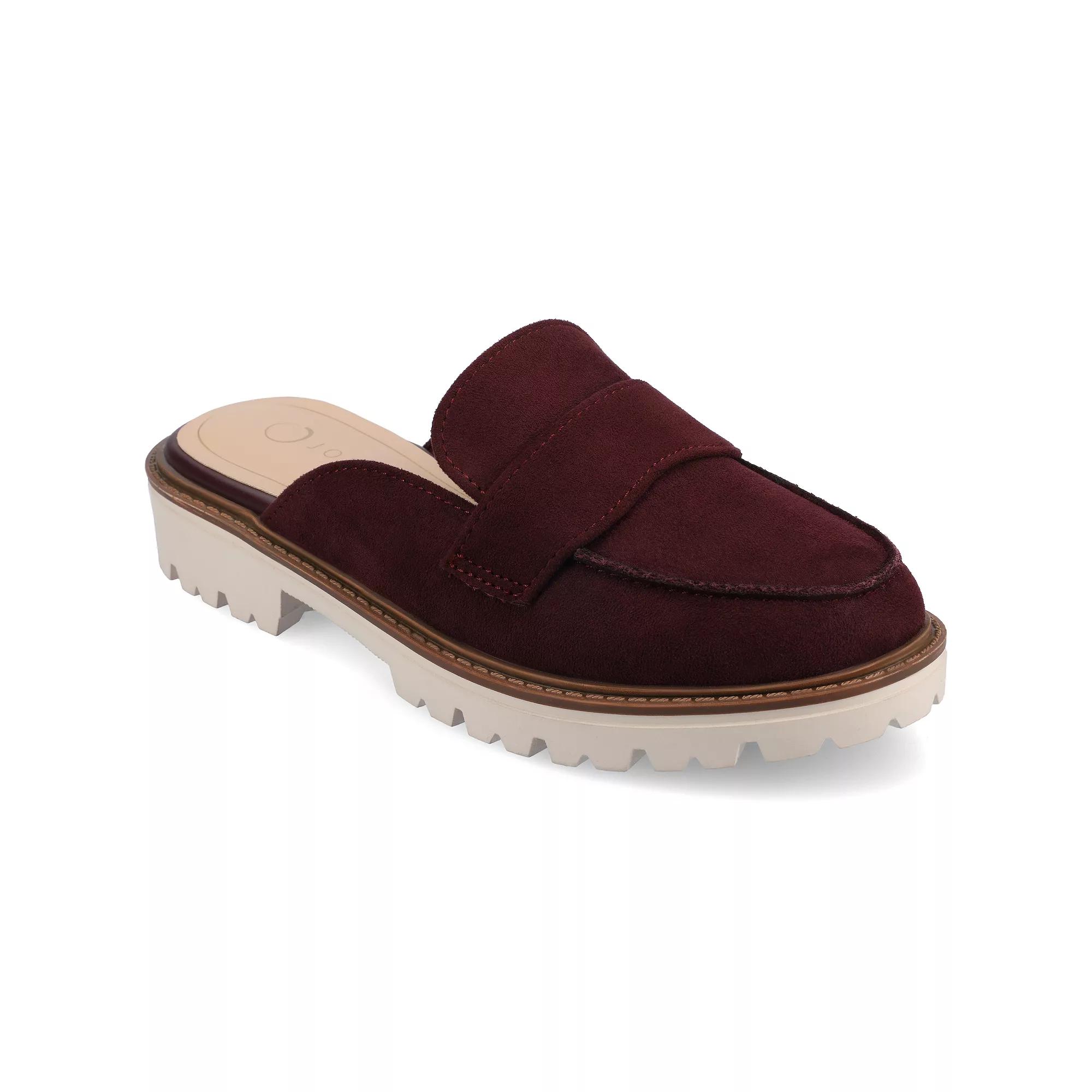 Step into comfort and style with these Journee Miycah women's mule flats. Click this FOOTWEAR GUIDE to find the perfect fit and more! - https://www.kohls.com/feature/shoesizeguide.jsp. FEATURES: Mule style, footbed for all day comfort, Slip-on for easy on and off. DETAILS: Faux leather upper, lining and midsole, Man-made outsole, Almond toe, Slip-on, footbed, 1.25-in. heel, 0.5-in. platform, Spot clean, Imported, Mule style. Size: 6. Color: Oxblood. Gender: female. Age Group: adult. Material: SYNTHETIC.