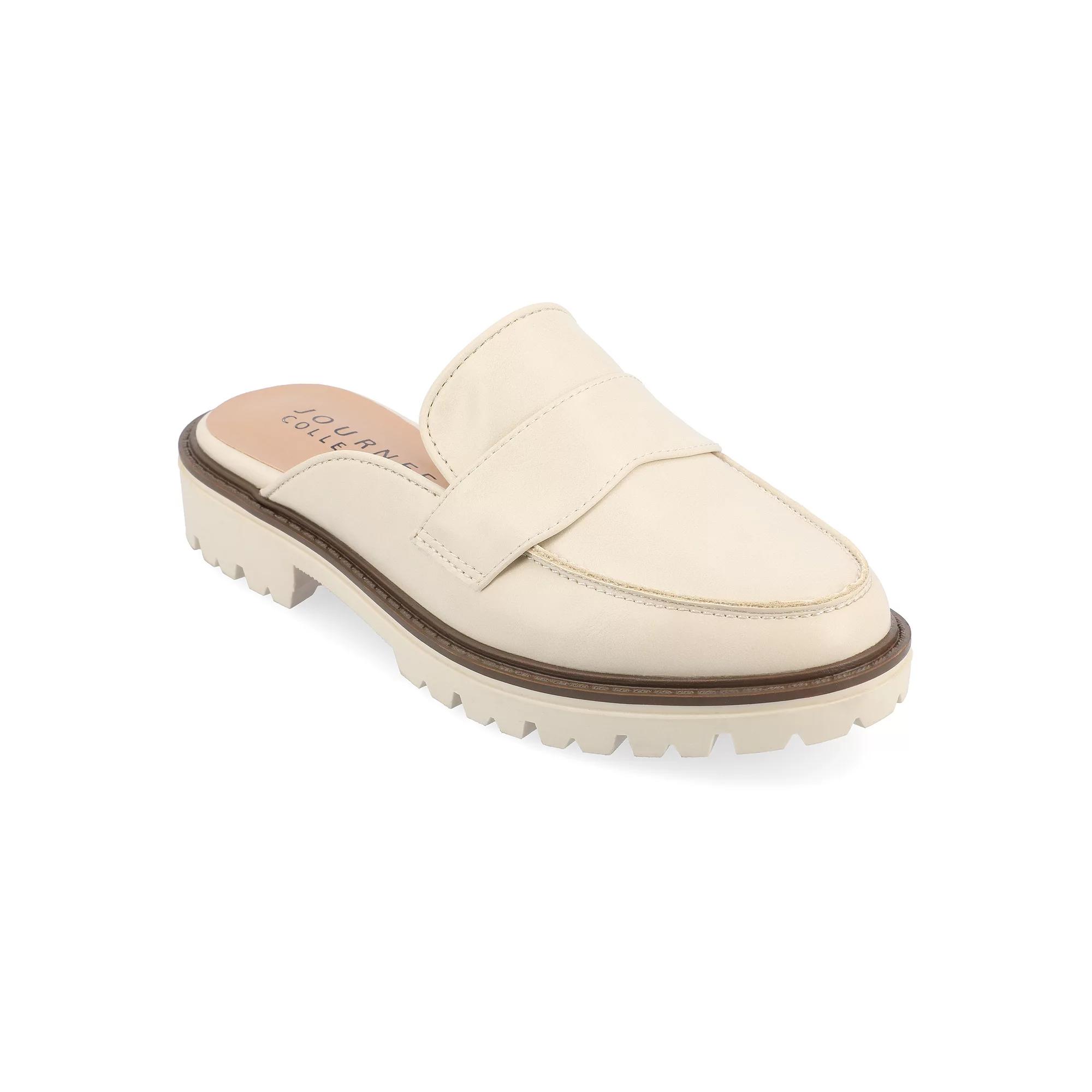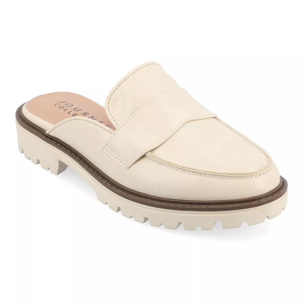 Step into comfort and style with these Journee Miycah women's mule flats. Click this FOOTWEAR GUIDE to find the perfect fit and more! - https://www.kohls.com/feature/shoesizeguide.jsp. FEATURES: Mule style, footbed for all day comfort, Slip-on for easy on and off. DETAILS: Faux leather upper, lining and midsole, Man-made outsole, Almond toe, Slip-on, footbed, 1.25-in. heel, 0.5-in. platform, Spot clean, Imported, Mule style. Size: 6.5. Color: Beige. Gender: female. Age Group: adult.