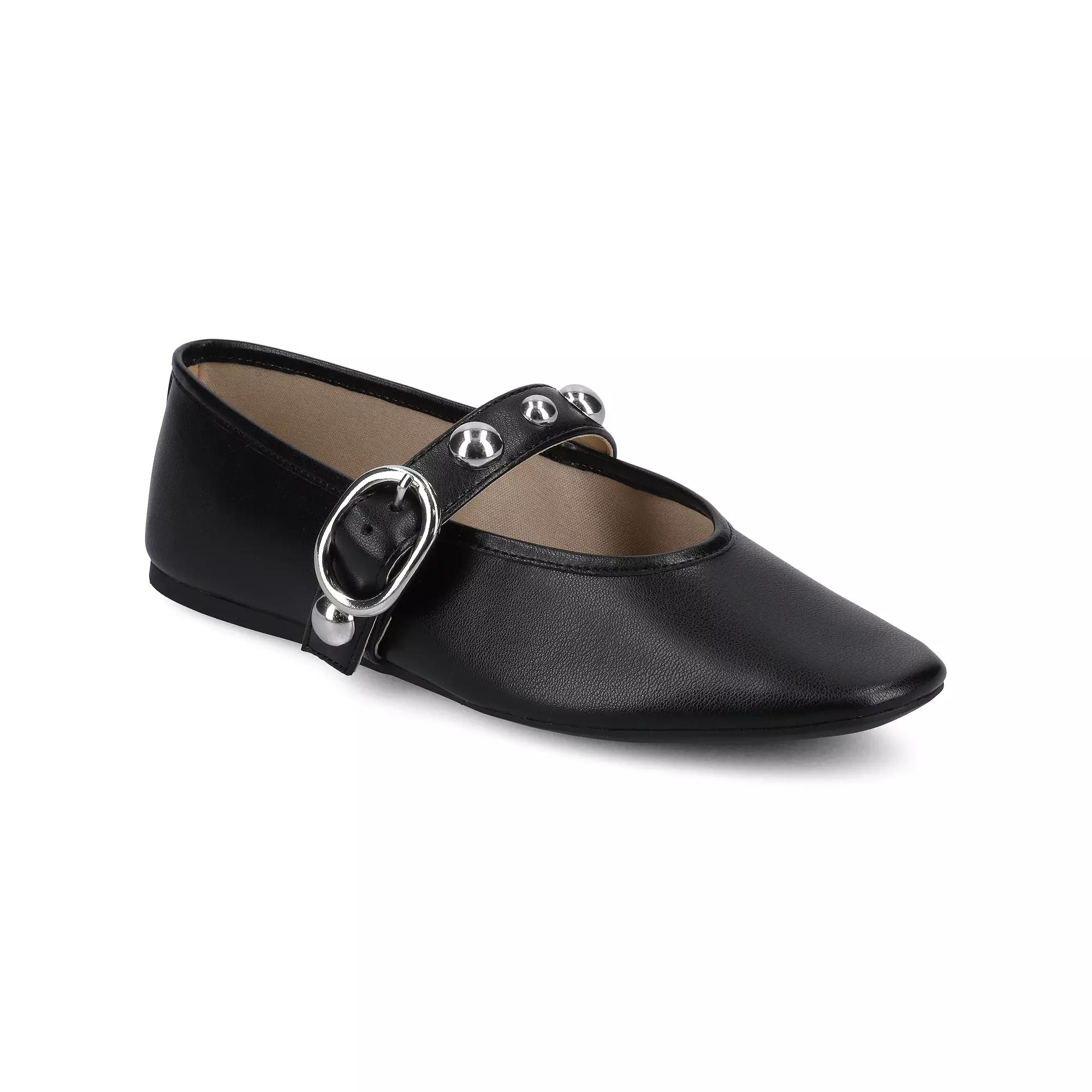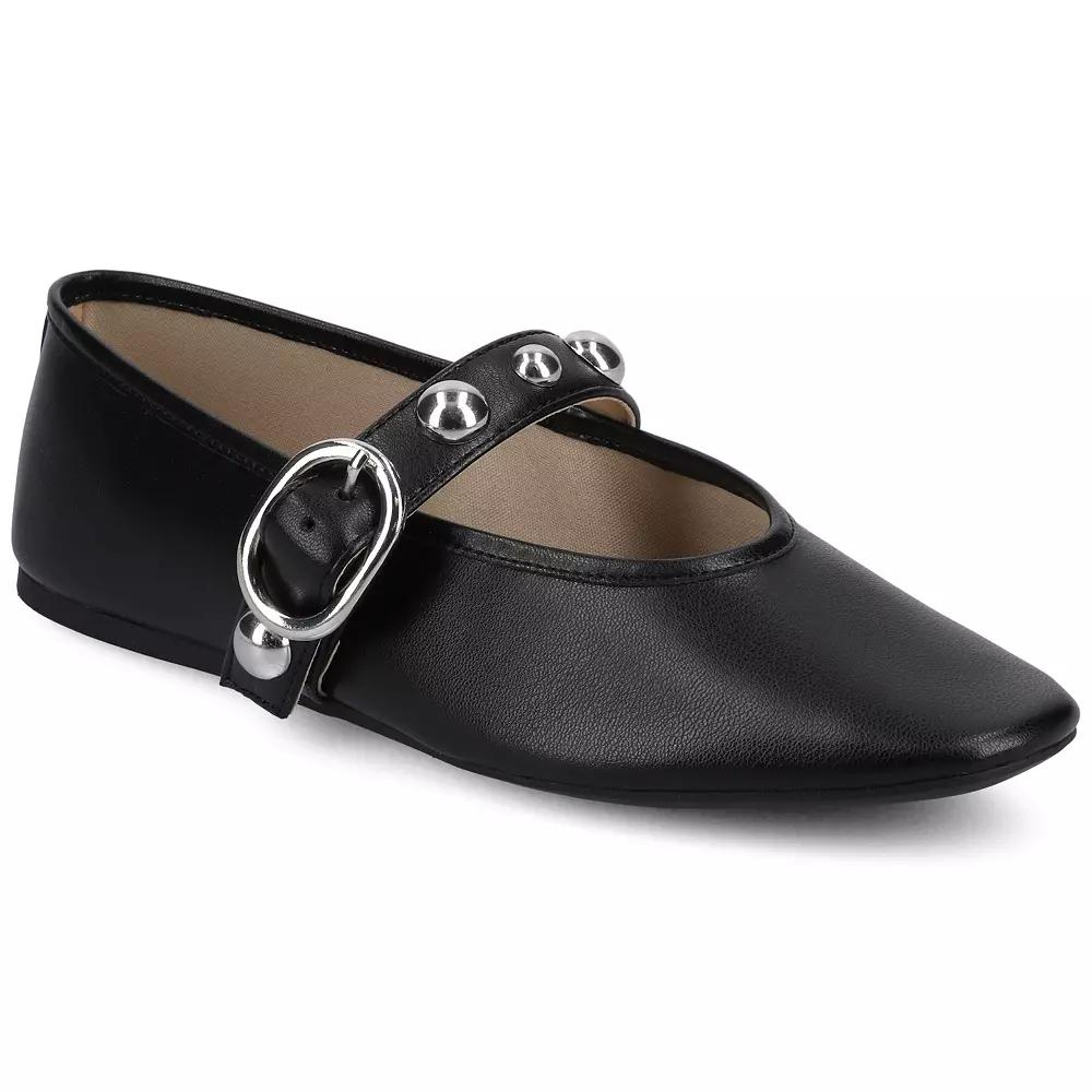 The Naveah studded ballet flats by Journee bring a bold edge to the classic Mary Jane style with their pointed-toe and sleek faux leather design. A strap with studded hardware and a buckle detail adds both style and a secure fit. Featuring a 4mm Journee Comfort System Insole, these flats ensure lasting comfort throughout the day. Featuring the signature 4 mm Journee Comfort System™ insole. Crafted with exceptional quality and designed for an ideal fit, this style brings together trend-forward aesthetics and lasting comfort. Click this FOOTWEAR GUIDE to find the perfect fit and more! - https://www.kohls.com/feature/shoesizeguide.jsp. FEATURES: Providing a sleek and polished appearance, Ensuring comfort and a timeless look. DETAILS: Man-made upper, lining and midsole, Rubber, Pointed toe, Buckle closure, Foam footbed, Spot clean, Imported. Size: 8.5. Color: Black. Gender: female. Age Group: adult. Material: SYNTHETIC.