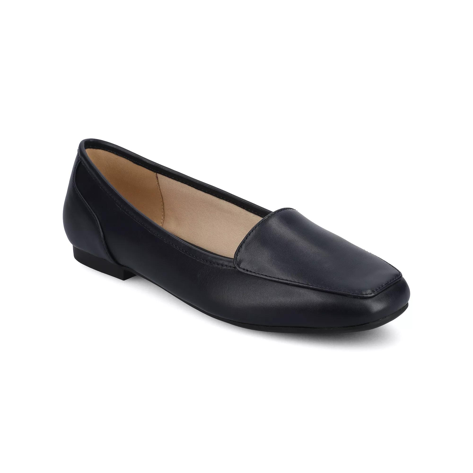 The Noelia ballet flat by Journee combines comfort and style with its square-toe design and sleek, slip-on detail. The flat sole provides a stable and chic look, perfect for everything from casual outings to work meetings. With the signature 4 mm Journee Comfort System™ Insole, these flats offer all-day comfort while keeping you stylish and on-the-go. Crafted with exceptional quality and designed for an ideal fit, this style brings together trend-forward aesthetics and lasting comfort. Click this FOOTWEAR GUIDE to find the perfect fit and more! - https://www.kohls.com/feature/shoesizeguide.jsp. FEATURES: Comfortable insole. DETAILS: Manmade upper, lining, & midsole, Rubber outsole, Square toe, Slip-on, Foam footbed, Spot clean, Imported. Size: 9. Color: Navy. Gender: female. Age Group: adult. Material: SYNTHETIC.