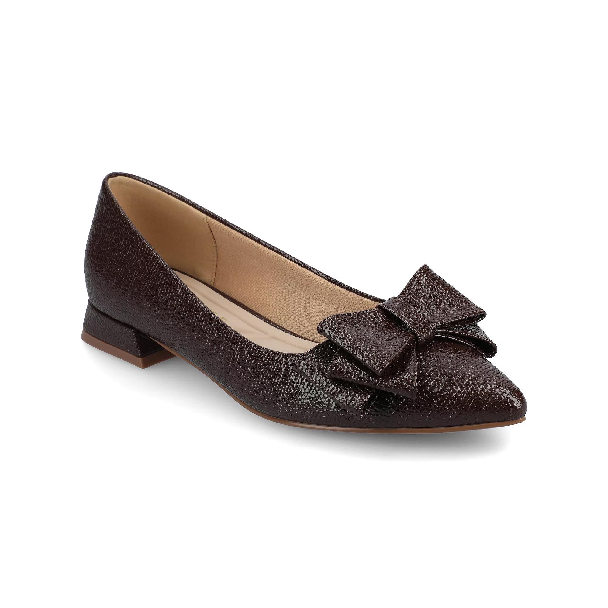 Dress up any outfit with these adorable Journee Ophelia women's flats. Click this FOOTWEAR GUIDE to find the perfect fit and more! - https://www.kohls.com/feature/shoesizeguide.jsp. FEATURES: Bow accent, for all day comfort, Covered block heel, Slip-on for easy on and off. DETAILS: Faux leather upper, Fabric lining and midsole, Man-made outsole, Pointed toe, Slip-on, footbed, 1-in. heel, Spot clean, Imported, Covered block heel. Size: 6 Wide. Color: Croco Brown. Gender: female. Age Group: adult.
