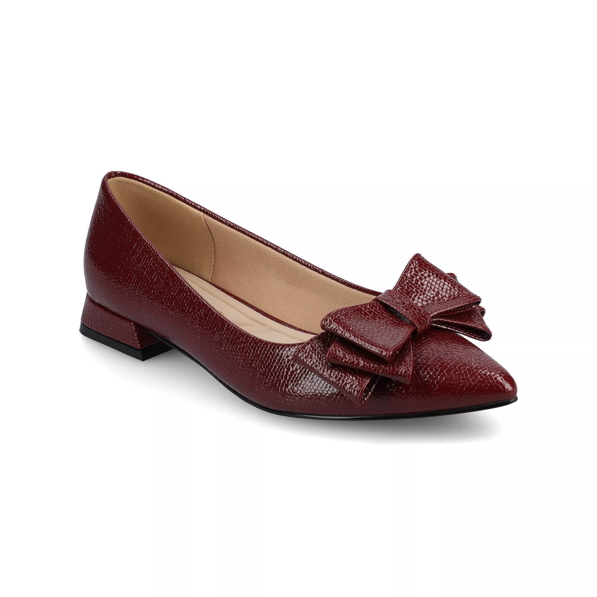 Dress up any outfit with these adorable Journee Ophelia women's flats. Click this FOOTWEAR GUIDE to find the perfect fit and more! - https://www.kohls.com/feature/shoesizeguide.jsp. FEATURES: Bow accent, for all day comfort, Covered block heel, Slip-on for easy on and off. DETAILS: Faux leather upper, Fabric lining and midsole, Man-made outsole, Pointed toe, Slip-on, footbed, 1-in. heel, Spot clean, Imported, Covered block heel. Size: 7.5 Wide. Color: Croco Oxblood. Gender: female. Age Group: adult.