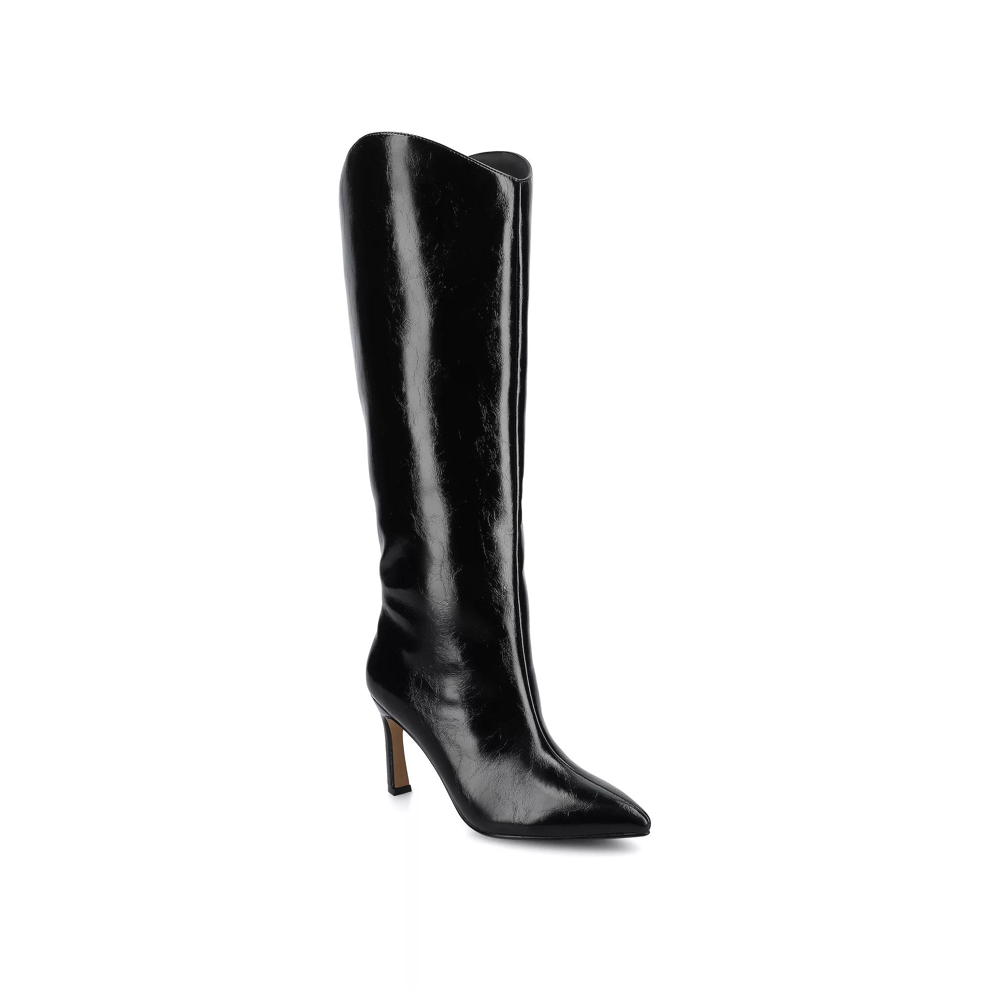 Meet the Rehela boot — where your power-meeting energy gets the comfort upgrade it deserves. This sleek stiletto knows how to make an entrance with its pointed-toe sophistication and buttery vegan leather that looks twice the price. Because why choose between looking incredible and feeling incredible?The real magic happens below the surface. Our 4mm Tru Comfort Foam™ from the Journee Comfort System transforms those "my feet are screaming" moments into "I could conquer the world in these" victories. It's like having a secret superpower that no one can see but you can definitely feel.The pull-on design means you're out the door in seconds — no fumbling with zippers when you're already running five minutes behind. That center seam detail? Pure intentional sophistication that whispers "she definitely has her life together" without you having to say a word.From that morning presentation where you need to command the room to the after-work drinks where you want to celebrate crushing it, Rehela transitions as seamlessly as you do. These aren't just boots that look good in your closet — they're the ones that make every step feel like you're walking into your next big moment. WC = Medium Width, Wide Calf. M XWC = Medium Width, Extra Wide Calf. W = Wide Width, Regular Calf. W WC = Wide Width, Wide Calf. W XWC = Wide Width, Extra Wide Calf. Click this FOOTWEAR GUIDE to find the perfect fit and more! - https://www.kohls.com/feature/shoesizeguide.jsp. FEATURES: Stiletto heel, Easy on and off. DETAILS: Faux leather upper & midsole, Fabric lining, Manmade outsole, Pointed toe, Pull-on, footbed, 3.25-in. heel, 14-in. shaft, 14.5-in. circumference, 15-in. wide circumference, Spot clean, Imported. Size: 7. Color: Patent Black. Gender: female. Age Group: adult.
