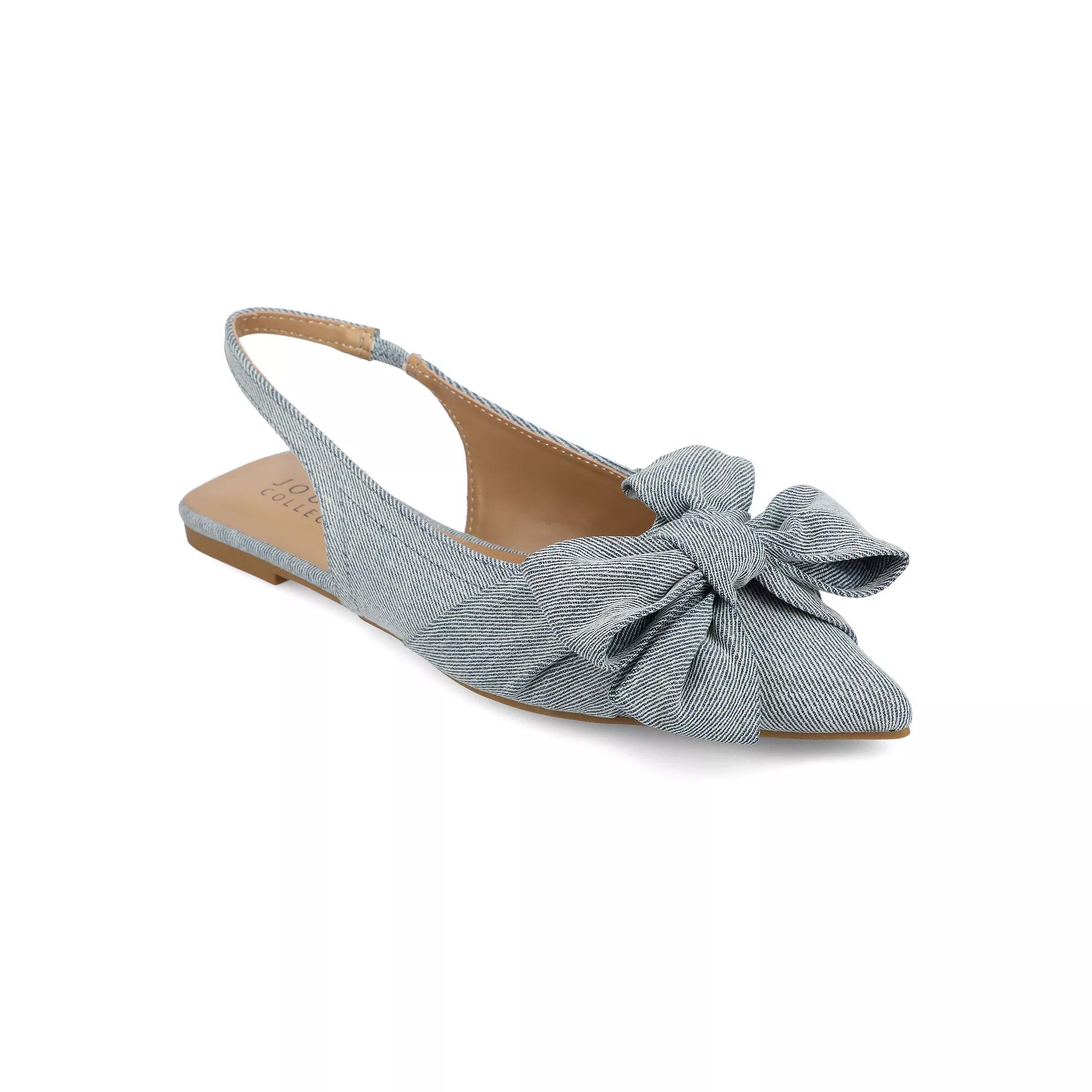 Fashion, comfort and style combine on these Journee Sabbrina Women's Sling Back Pointed Toe Flats. Click this FOOTWEAR GUIDE to find the perfect fit and more! - https://www.kohls.com/feature/shoesizeguide.jsp. FEATURES: Denim, Tweed Fabric, Luxe Faux Leather, Sling Back, Bow Detail. DETAILS: Manmade upper, Faux-leather lining, Faux-leather midsole, Manmade outsole, Pointed toe, Pull-on, footbed, Spot clean, Imported. Size: 6. Color: Light Denim. Gender: female. Age Group: adult. Material: SYNTHETIC.