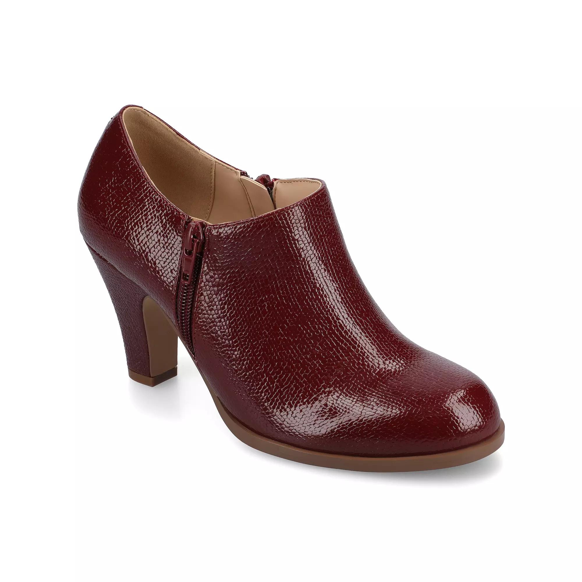 Step into trend-setting style with these Sanzi ankle boots from Journee. Click this FOOTWEAR GUIDE to find the perfect fit and more! - https://www.kohls.com/feature/shoesizeguide.jsp. Watch the product video here. - https://media.kohlsimg.com/is/content/kohls/mp4/1708/KOHLSBootFitGuide_VDEO.mp4. BOOT FEATURES: Zipper accent. Block heel. BOOT CONSTRUCTION: Faux leather upper. Manmade outsole. BOOT DETAILS: Almond toe. Zipper closure. Padded footbed. 3-in. heel. 0.5-in. platform. 4-in. shaft. 10-in. circumference. Size: 7 Wide. Color: Lizard Oxblood. Gender: female. Age Group: adult. Material: FAUX SUEDE.