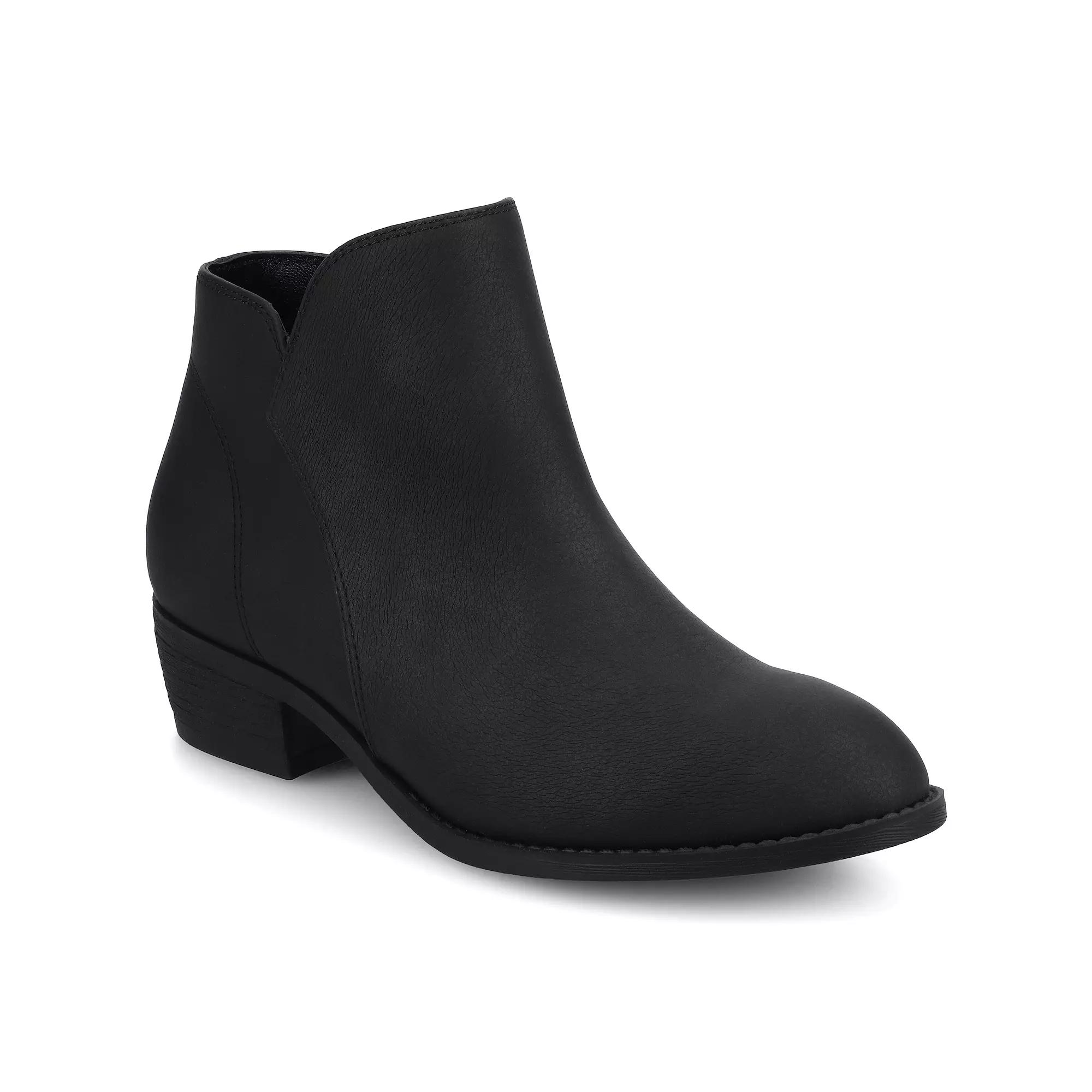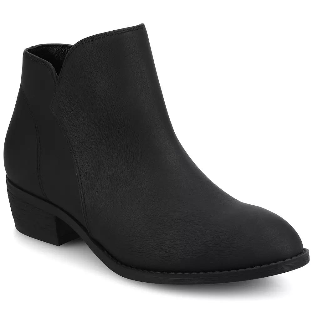 The Solarah pull-on ankle bootie by Journee combines modern style with comfort, featuring a sleek faux leather upper and a trendy almond-toe design. With its 1 1/2-inch block heel, this bootie adds subtle elevation while remaining easy to wear, thanks to its pull-on design. The signature 4 mm Journee Comfort System™ Insole ensures all-day support and cushioning, making it perfect for everyday wear. Crafted with exceptional quality and designed for an ideal fit, this style brings together trend-forward aesthetics and lasting comfort. Click this FOOTWEAR GUIDE to find the perfect fit and more! - https://www.kohls.com/feature/shoesizeguide.jsp. FEATURES: Journee comfort system insole, Ankle height. DETAILS: Man-made upper, lining, and midsole, Rubber outsole, Almond toe, Pull-on, Foam footbed, Heel height: 1.5-in., Book shaft height: 3.5-in., Boot shaft circumference: 10-in., Spot clean, Imported. Size: 6.5. Color: Vintage Black. Gender: female. Age Group: adult. Material: SYNTHETIC.