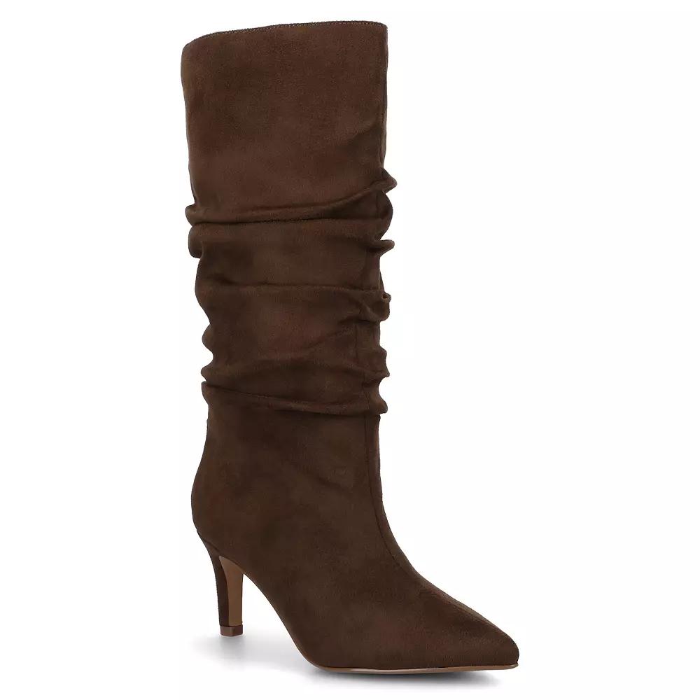 The Sonnet knee-high slouchy boot by Journee is a chic dress boot crafted from sleek faux leather, designed to elevate any outfit with its slouchy silhouette. With a 3-inch stiletto heel and a 11 1/2-inch shaft height, it offers a flattering and sophisticated look for both work and evening outings. Featuring a 14 1/2-inch calf and top circumference, along with a signature 4 mm Journee Comfort System™ Insole, these pull-on boots ensure both style and comfort from morning to night. Crafted with exceptional quality and designed for an ideal fit, this style brings together trend-forward aesthetics and lasting comfort. WC = Medium Width, Wide Calf. M XWC = Medium Width, Extra Wide Calf. W = Wide Width, Regular Calf. W WC = Wide Width, Wide Calf. W XWC = Wide Width, Extra Wide Calf. Click this FOOTWEAR GUIDE to find the perfect fit and more! - https://www.kohls.com/feature/shoesizeguide.jsp. FEATURES: Slouch design. DETAILS: Manmade lining, upper, & midsole, Rubber outsole, Pointed toe, Pull-on, Foam footbed, 3-in. heel height, 11.5-in. shaft height, 14.5-in. regular shaft circumference. 16.5-in. WC shaft circumference. 18.5-in. XWC shaft circumference. , Spot clean, Imported. Size: 8 Wc. Color: Chocolate. Gender: female. Age Group: adult. Material: SYNTHETIC.